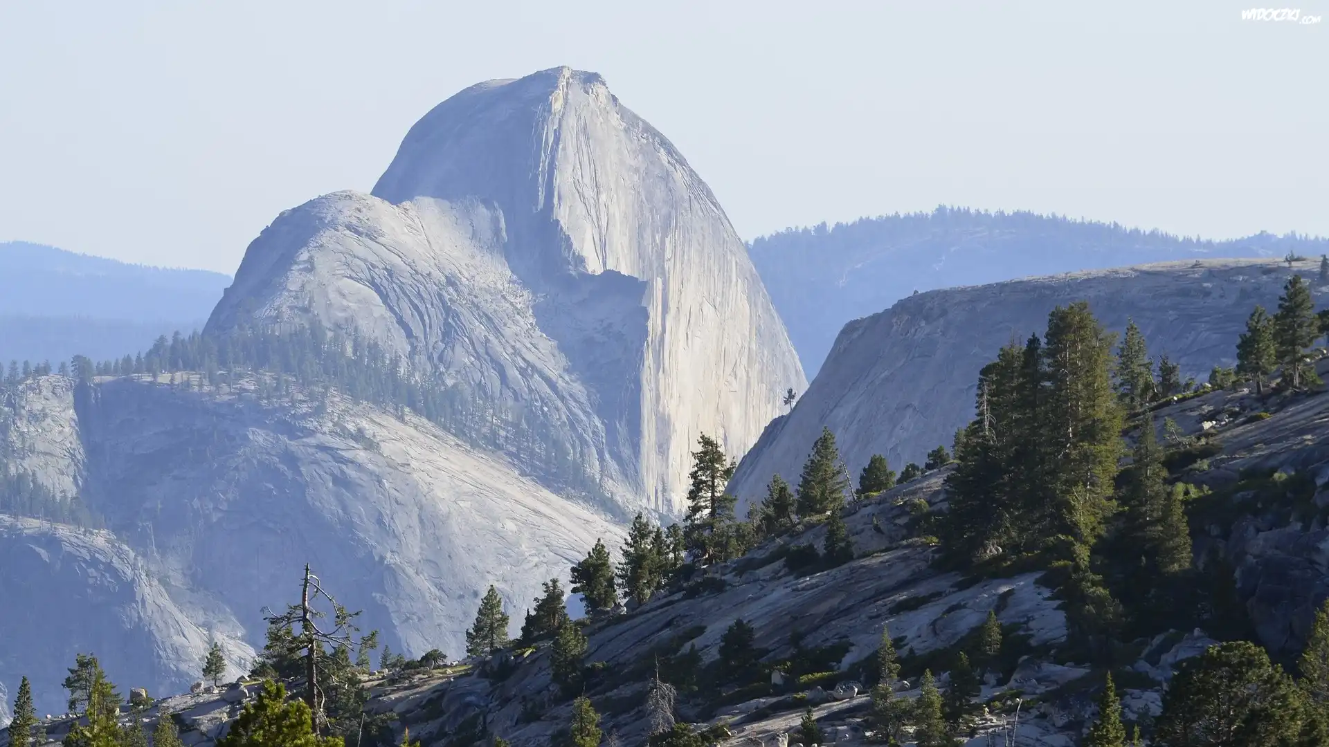 Zdjęcia, Stany Zjednoczone, Stan Kalifornia, Park Narodowy Yosemite, Góry, Góra Half Dome, Drzewa