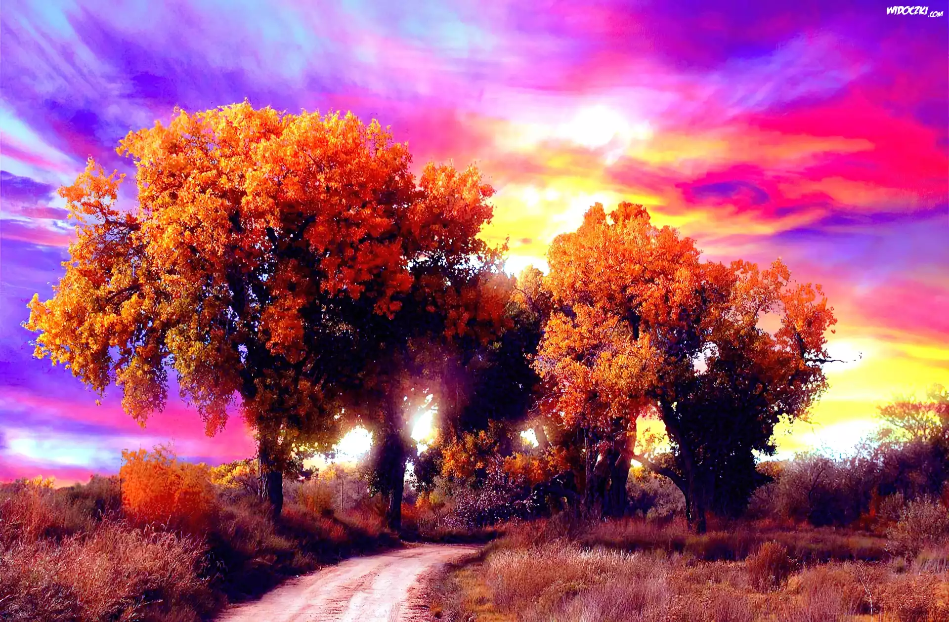 Zdjęcia, Drzewa, Kolorowe, Niebo, Jesień