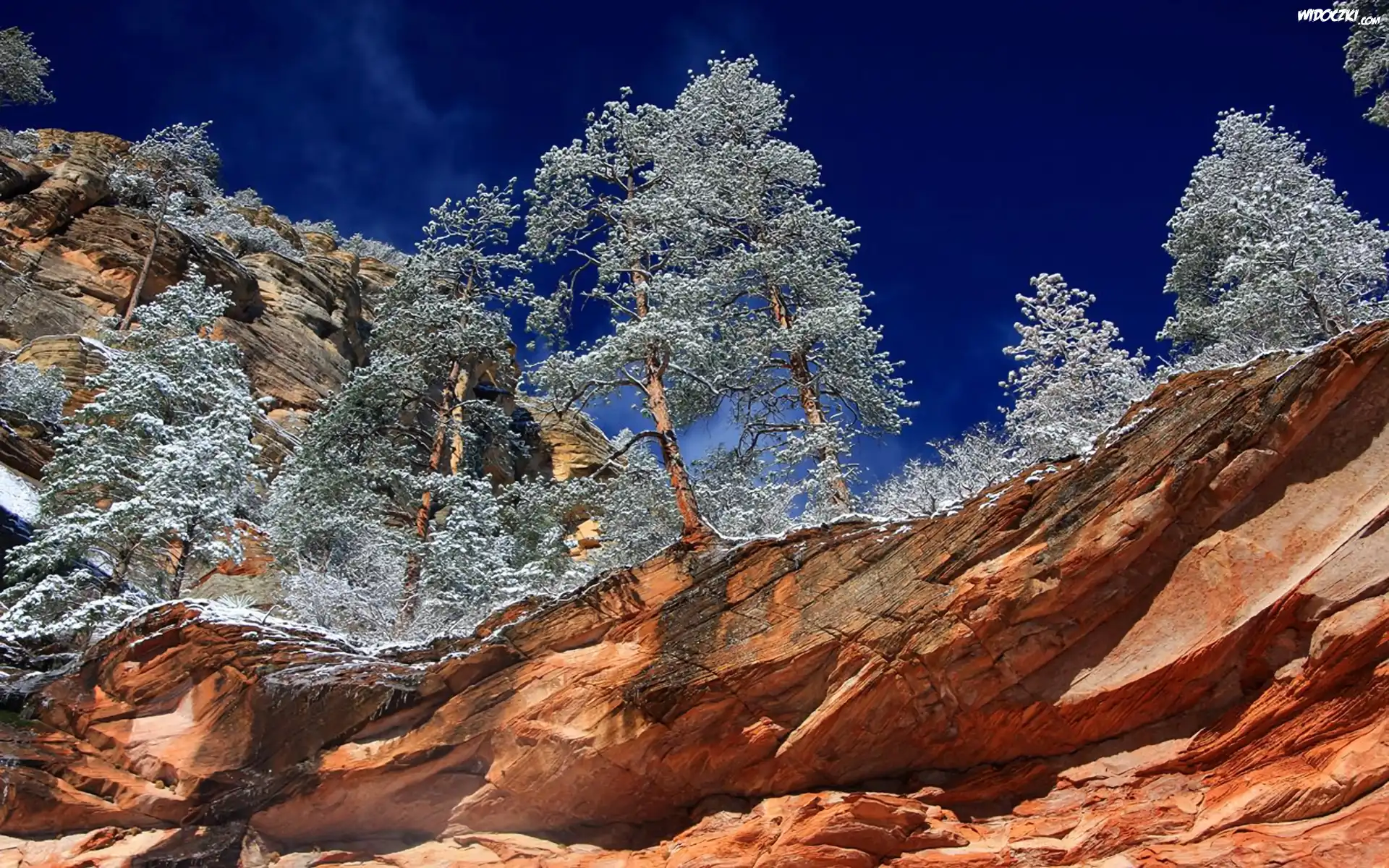 Zdj臋cia, Drzewa, Szron, Niebo, Niebieski