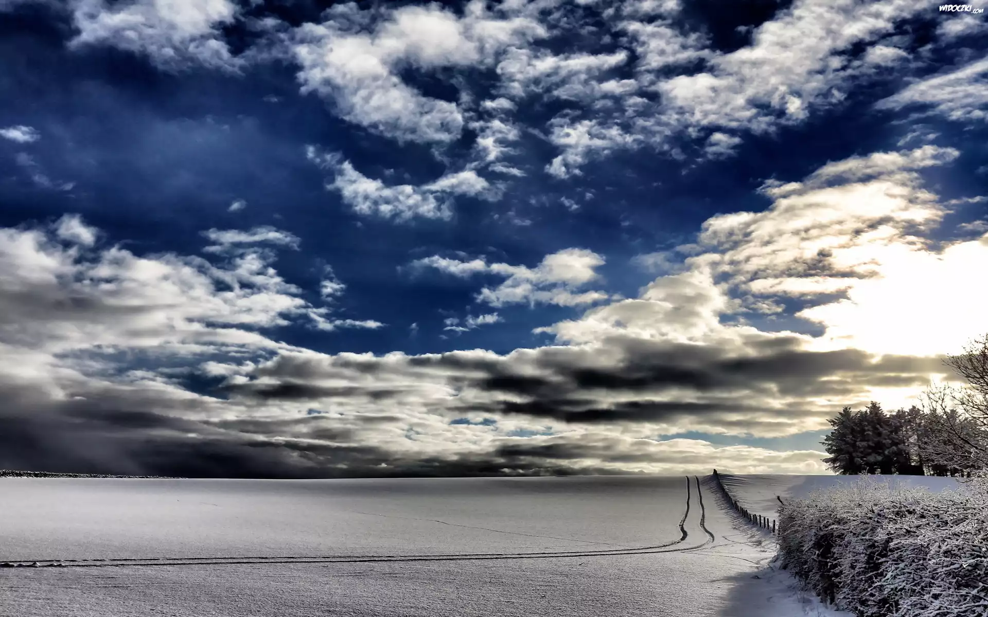 Zdjęcia, Drzewa, Chmury, Śnieg, Zima