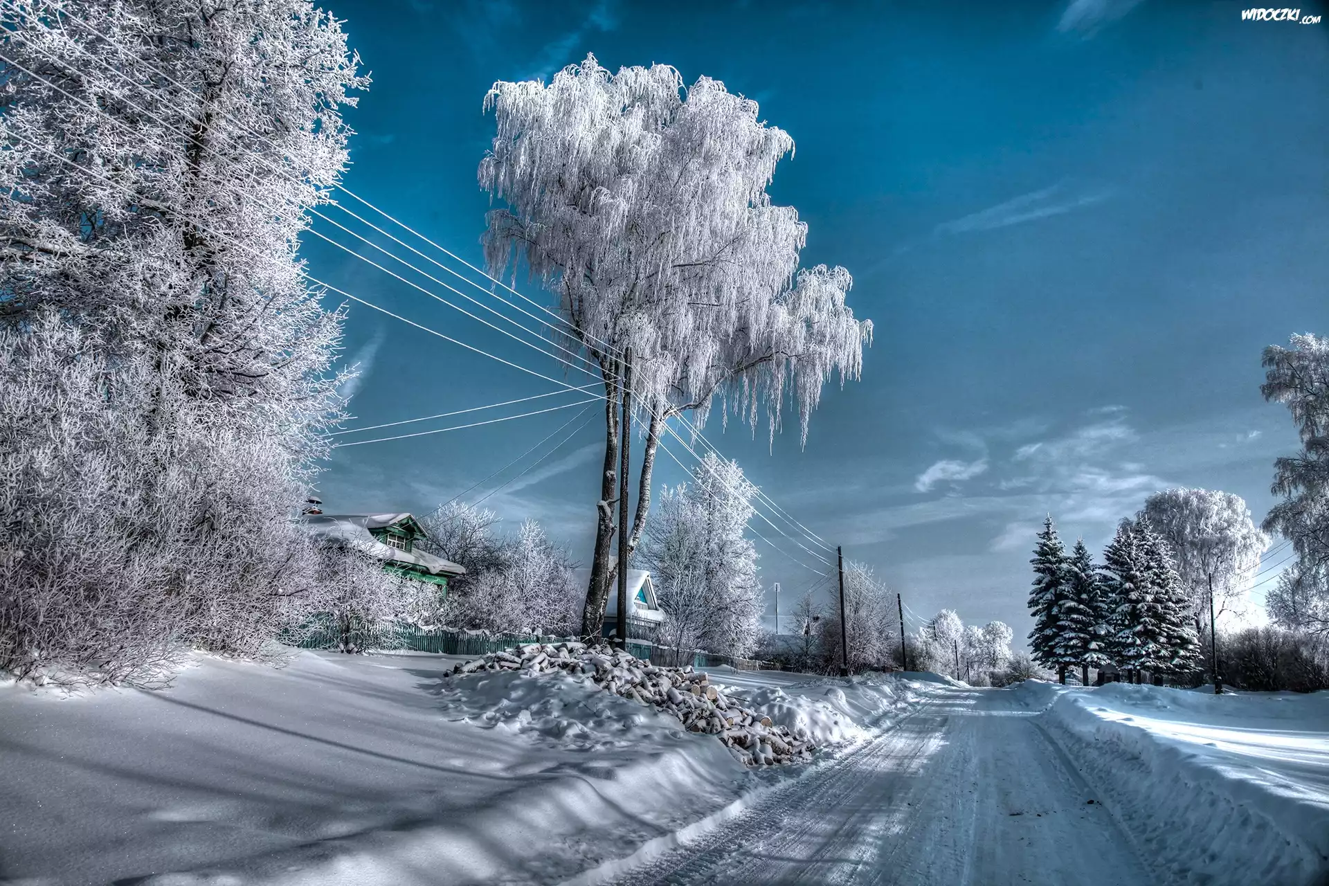 Zdjęcia, Drzewa, Droga, Śnieg, Zima