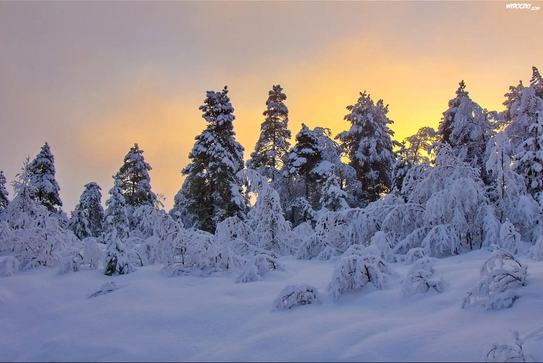 Zdjęcia, Śnieg, Drzewa, Niebo