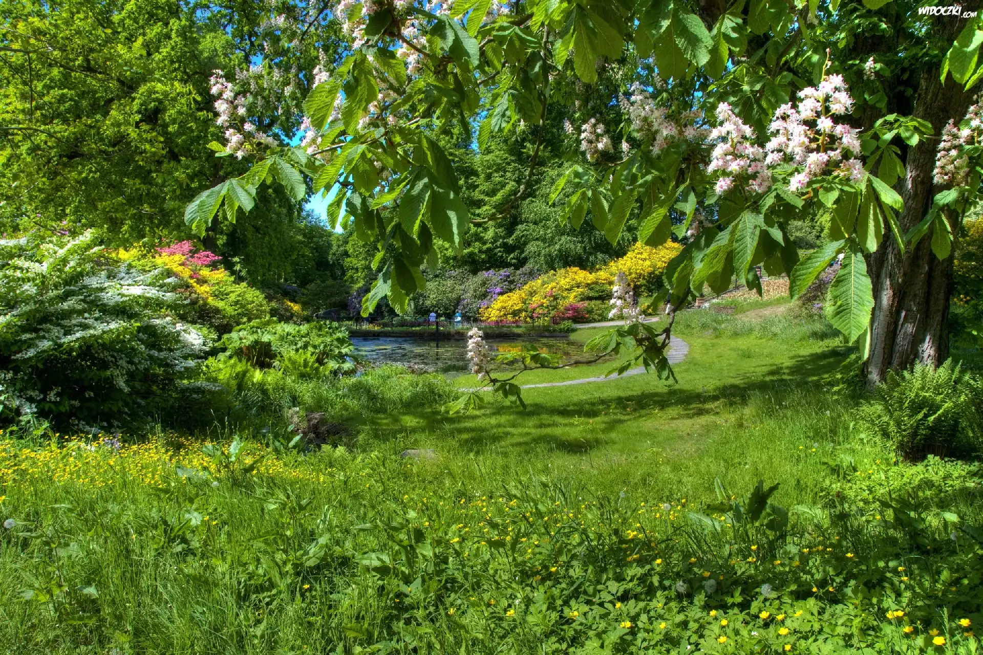 Zdjęcia, Ogród, Drzewa, Kwiaty