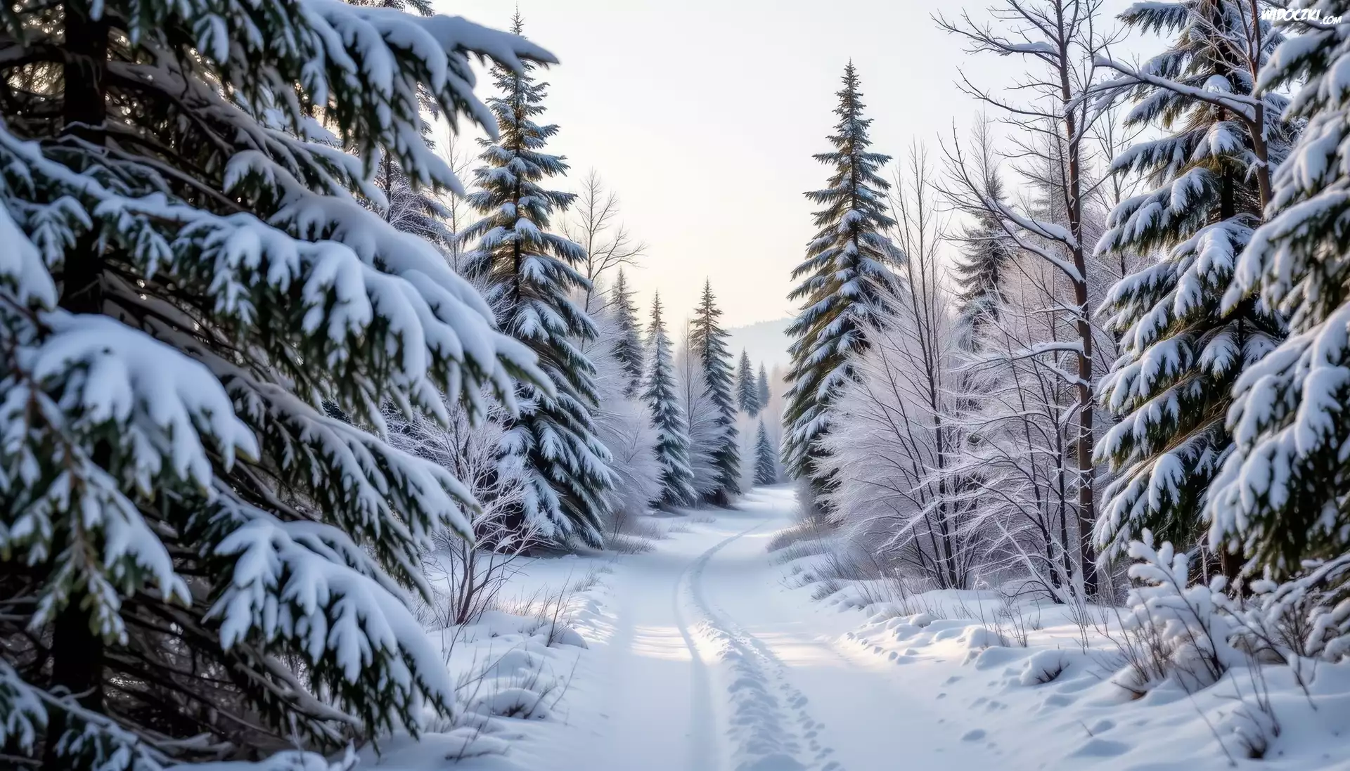 Zdjęcia, Zima, Las, Ośnieżone, Drzewa, Droga, Śnieg, AI