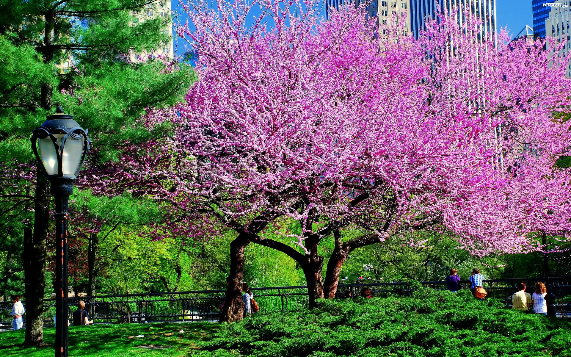 Zdjęcia, Park, Drzewa, Lampa