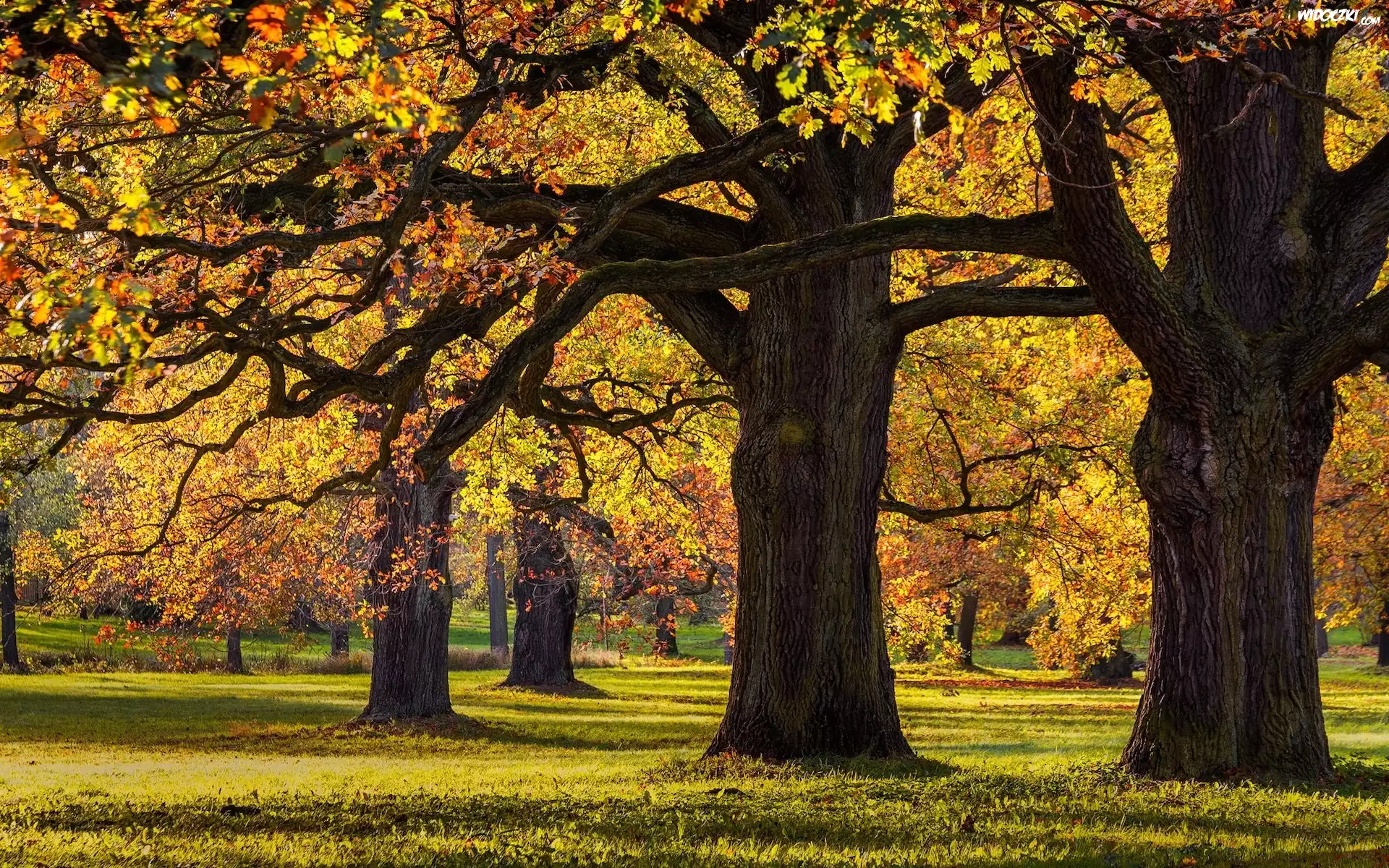 Zdjęcia, Park, Jesień, Pożółkłe, Drzewa