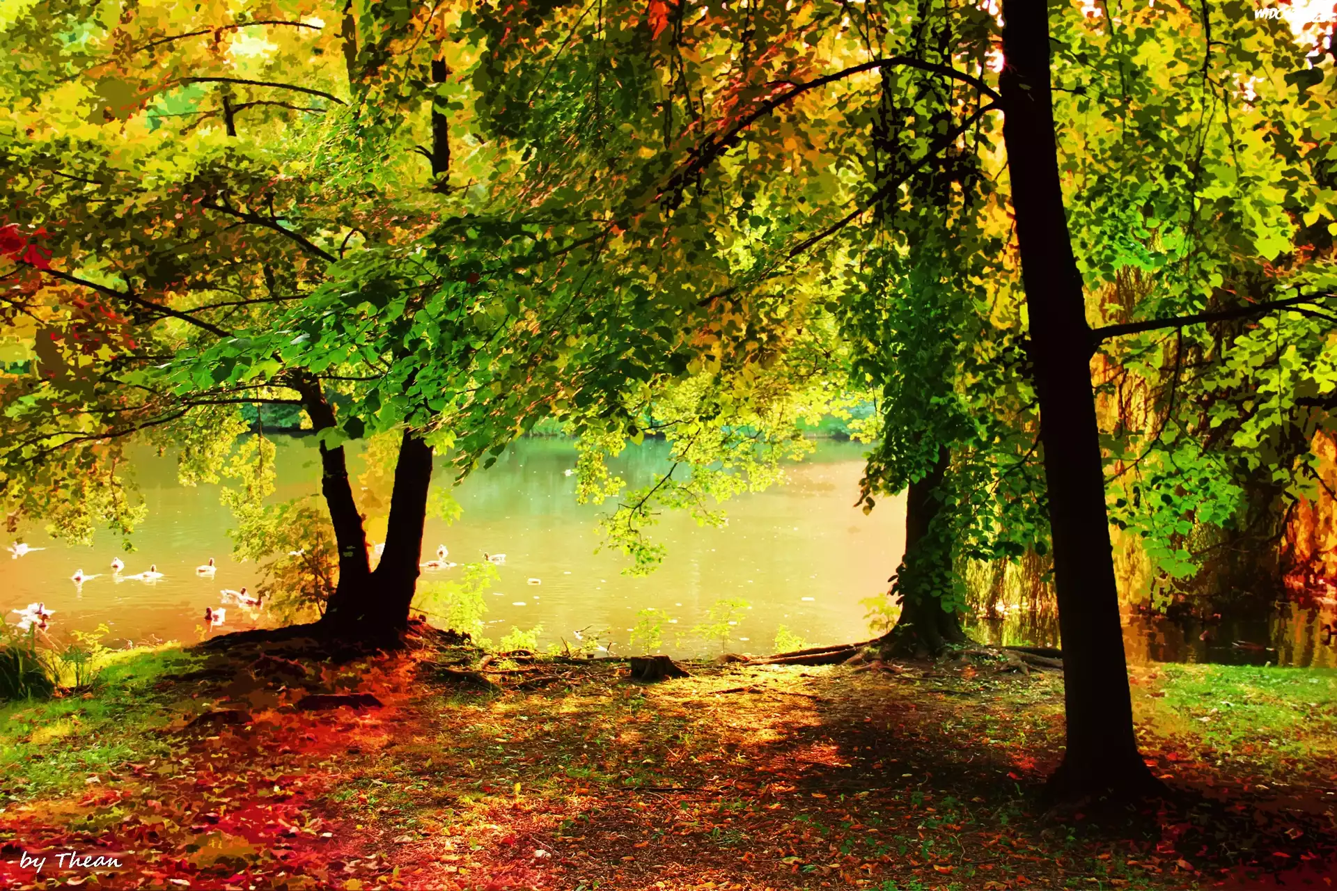 Zdjęcia, Drzewa, W, Parku, Staw