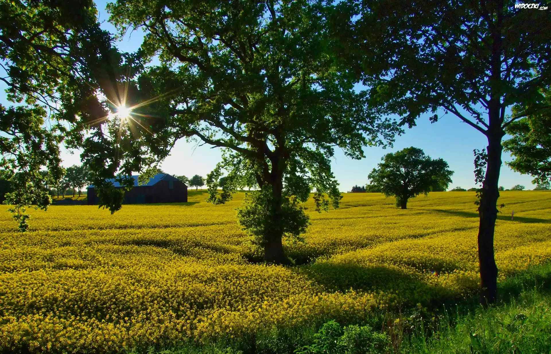 Pola, Rzepak, Dom, Drzewa