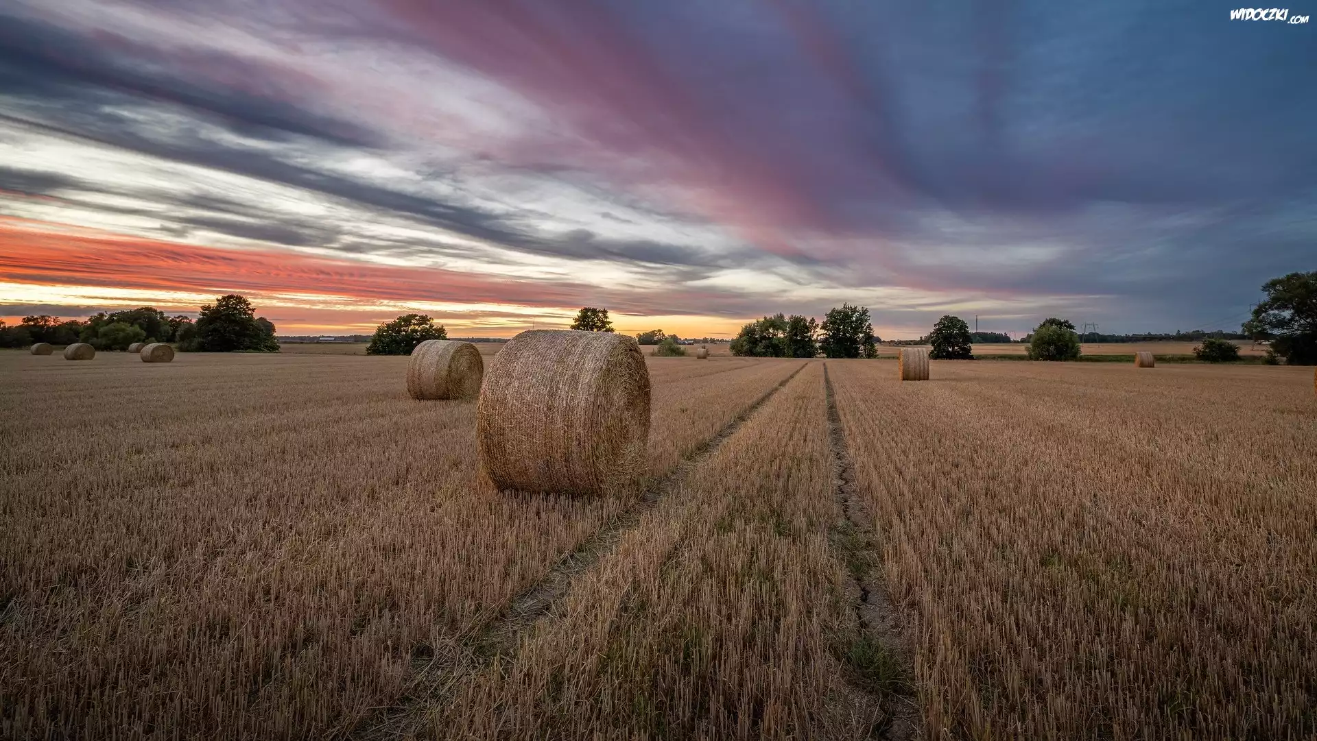 Zdjęcia, Pole, Słoma, Bele, Drzewa