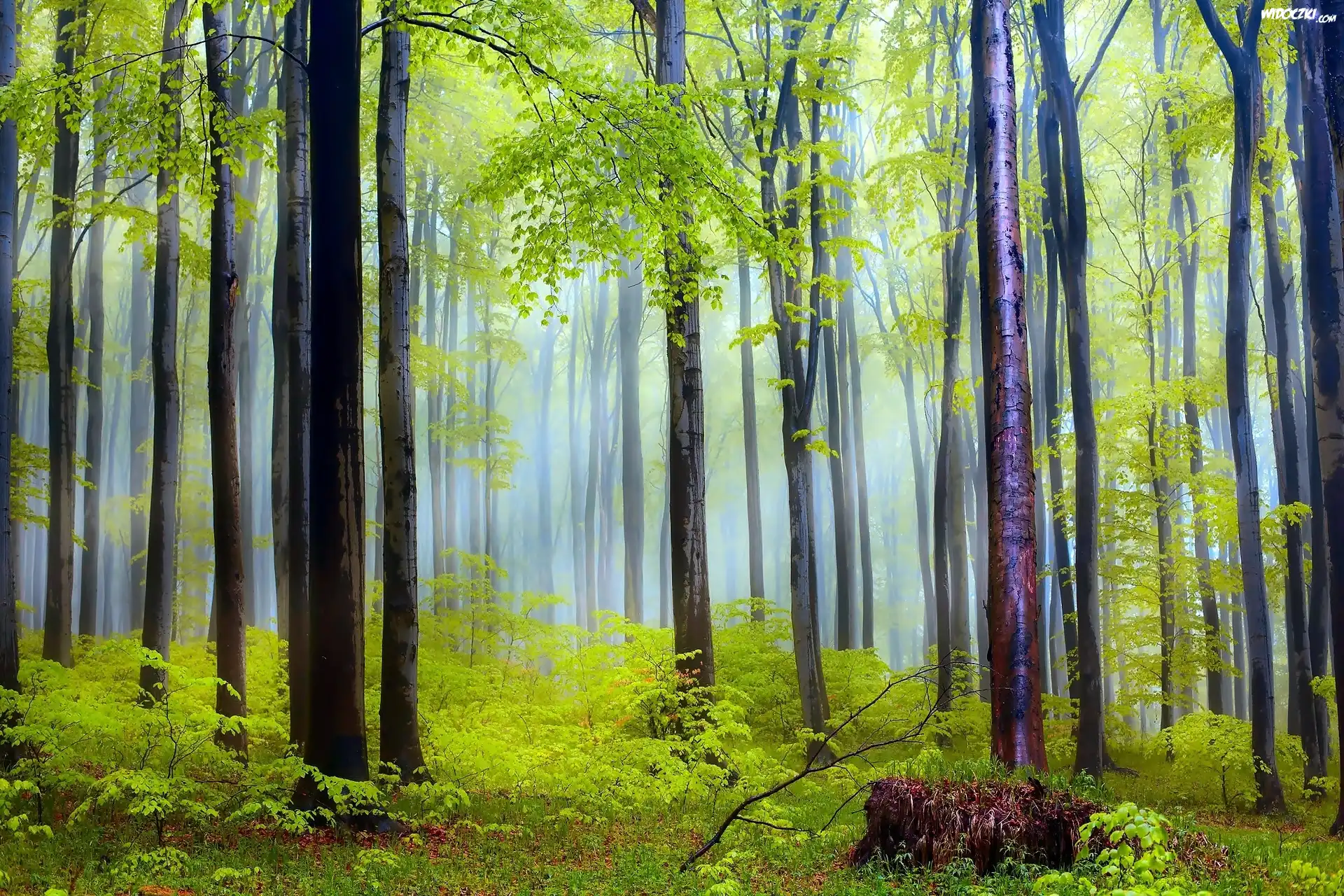 Zdjęcia, Drzewa, Mgła, Poranek, Wiosna