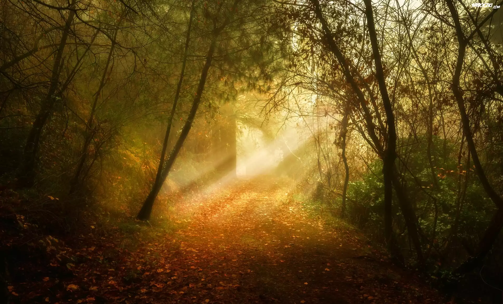 Zdjęcia, Drzewa, Las, Jesień, Przebijające Światło