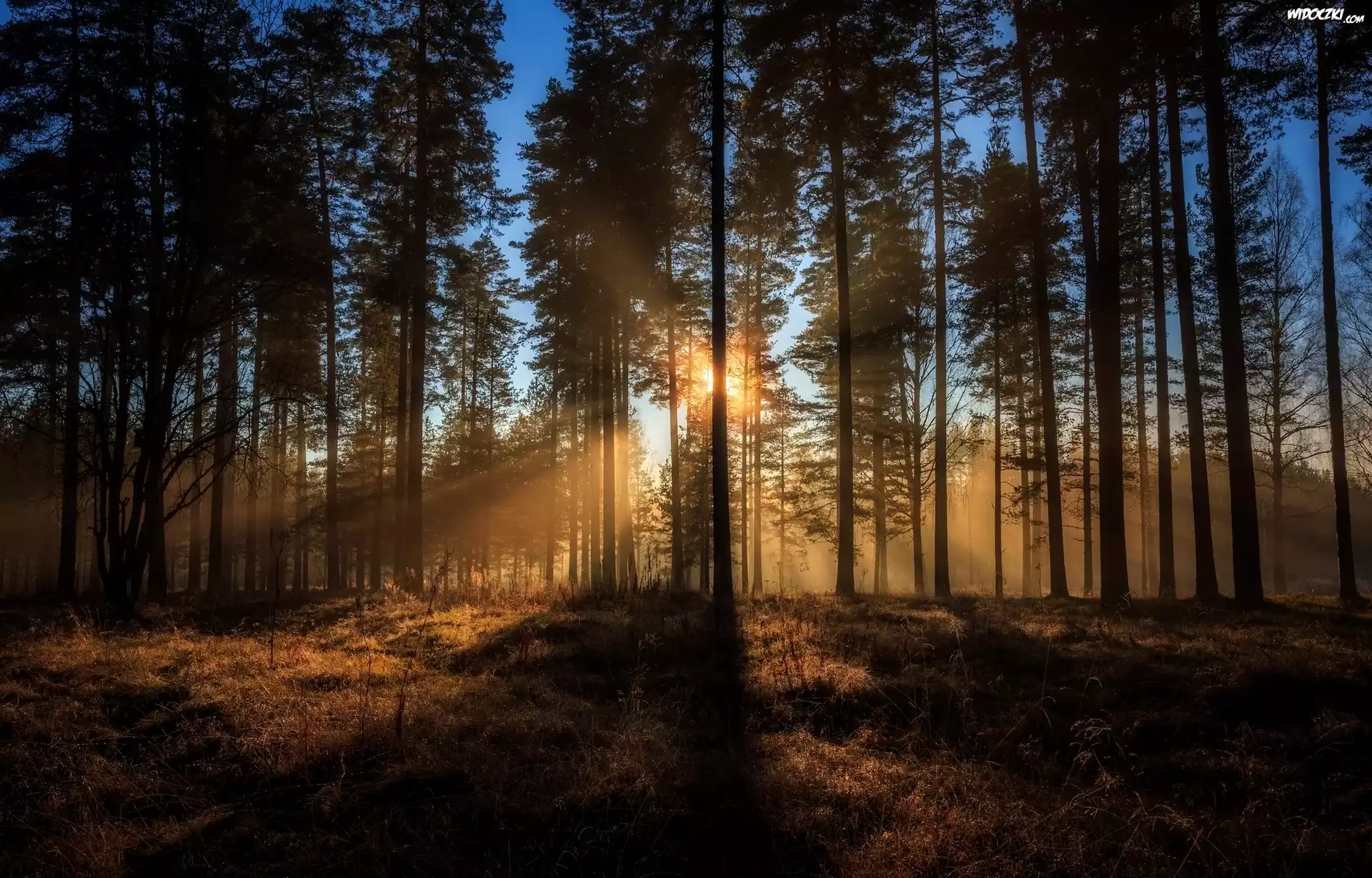 Zdjęcia, Drzewa, Las, Przebijające światło