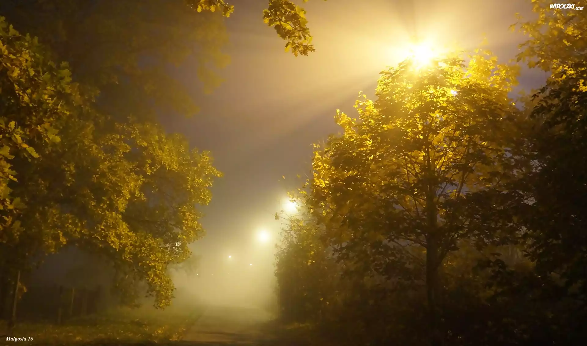 Zdjęcia, Drzewa, Noc, Mgła, Przebijające Światło
