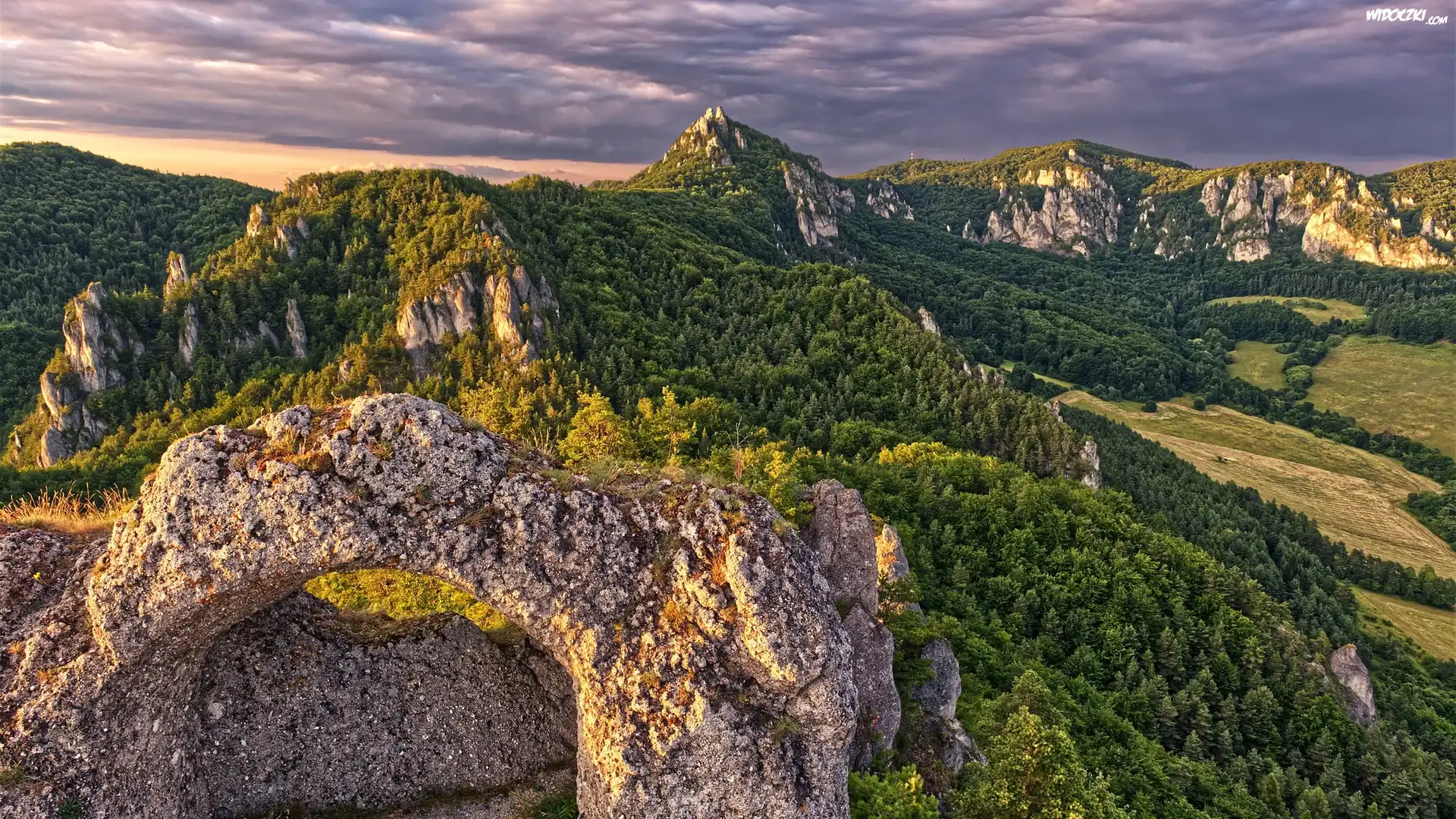Góry, Skały, Drzewa, Lasy, Ruiny, Zamek, Castle Sulov, Powiat Bytca, Słowacja