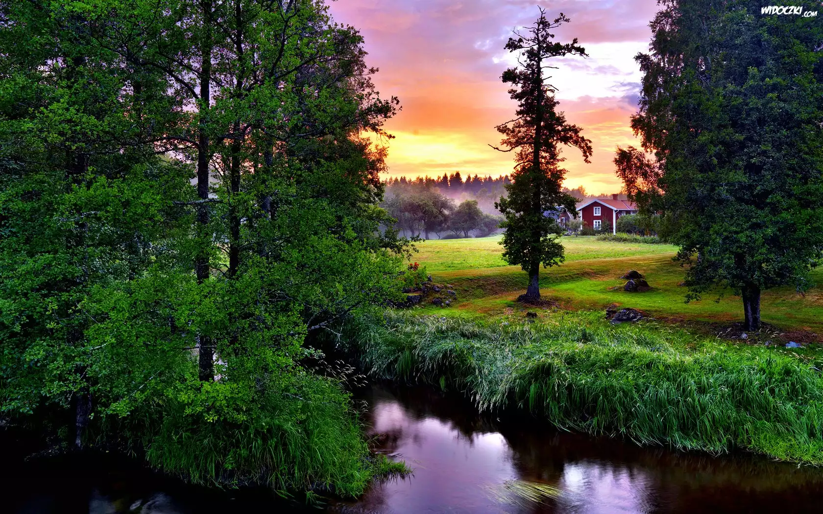 Zdjęcia, Rzeczka, Drzewa, Zieleń