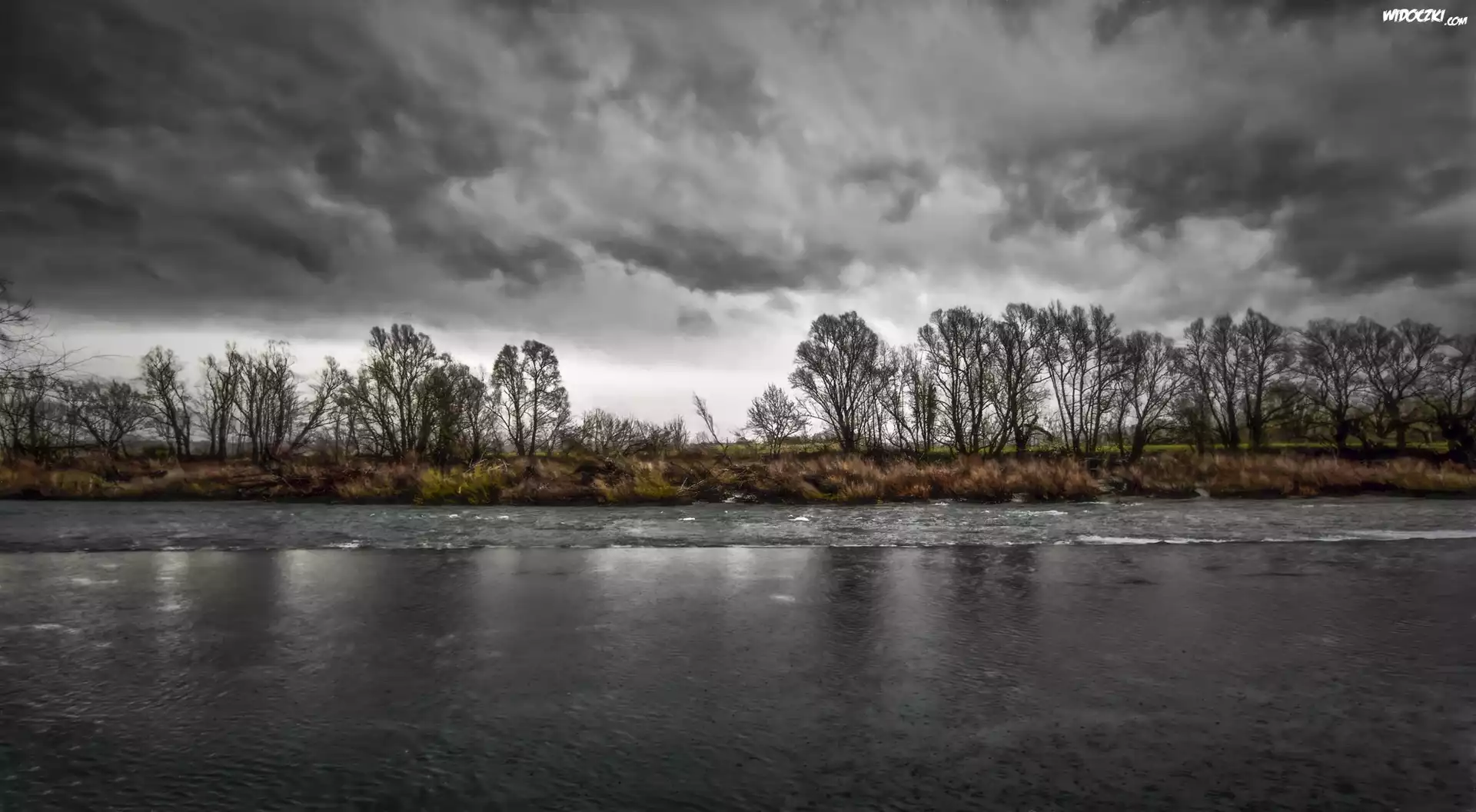Zdj臋cia, Rzeka, Drzewa, Chmury