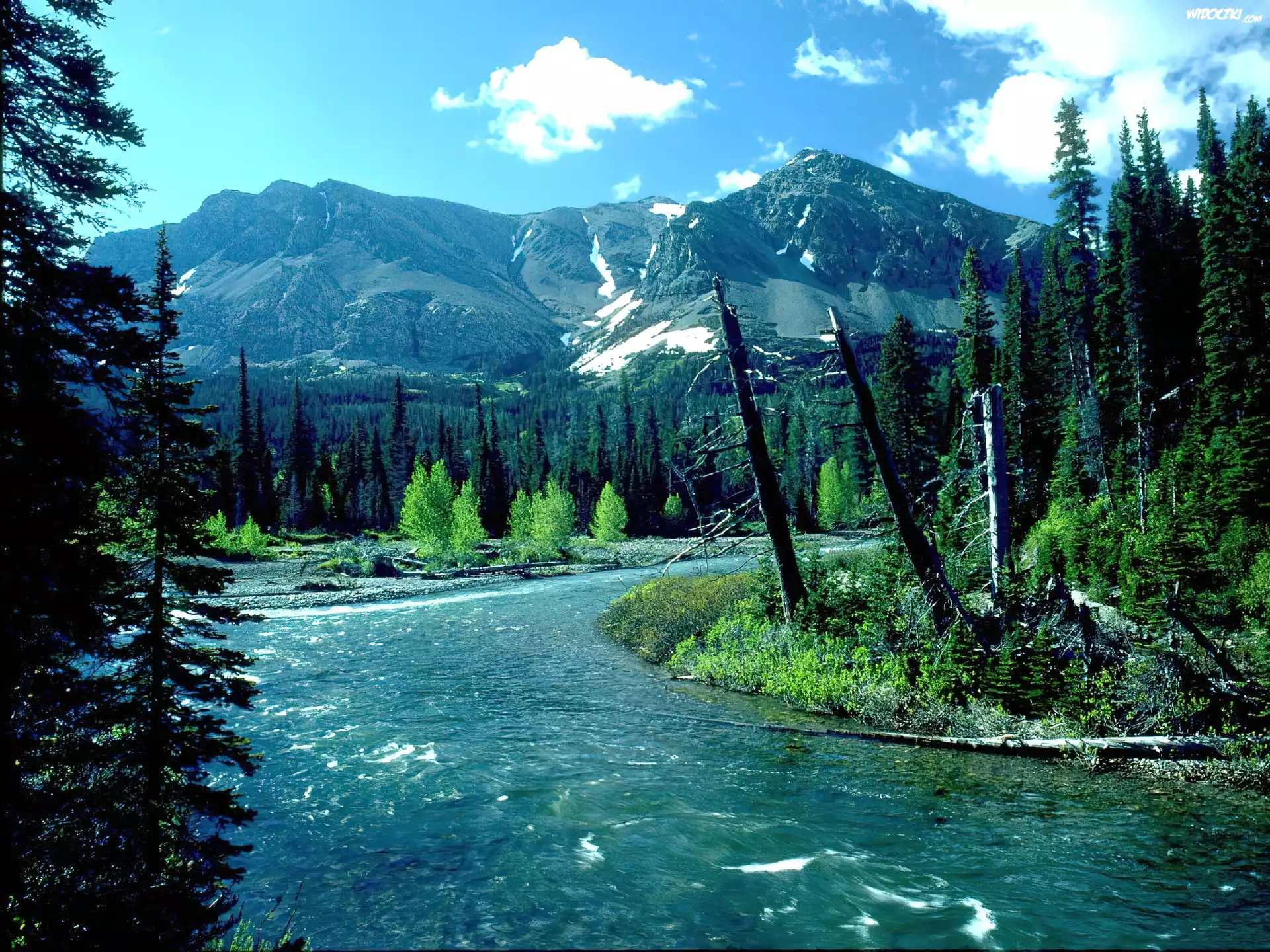 Zdjęcia, Rzeka, Drzewa, Góry