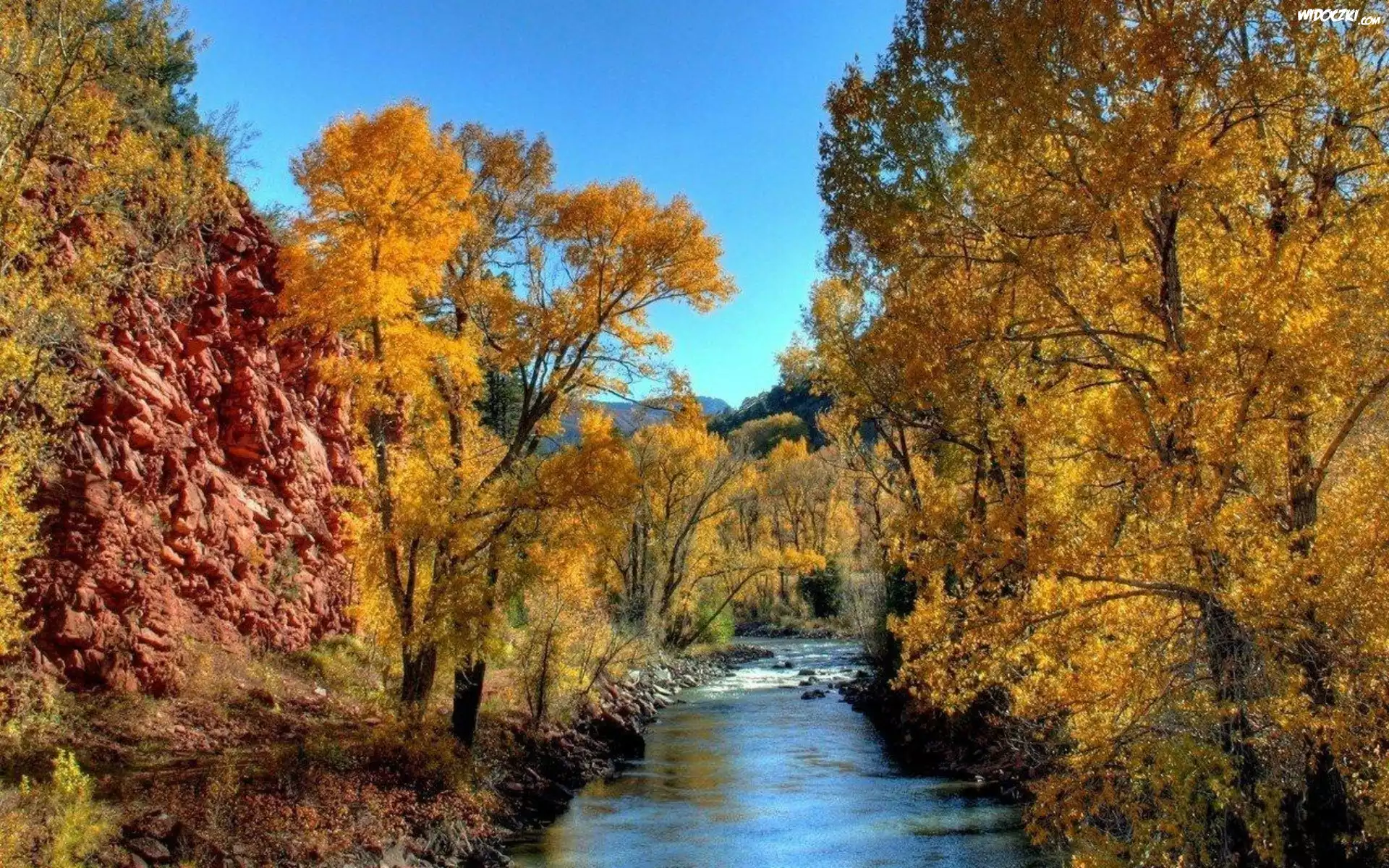 Rzeka, Drzewa, Jesień