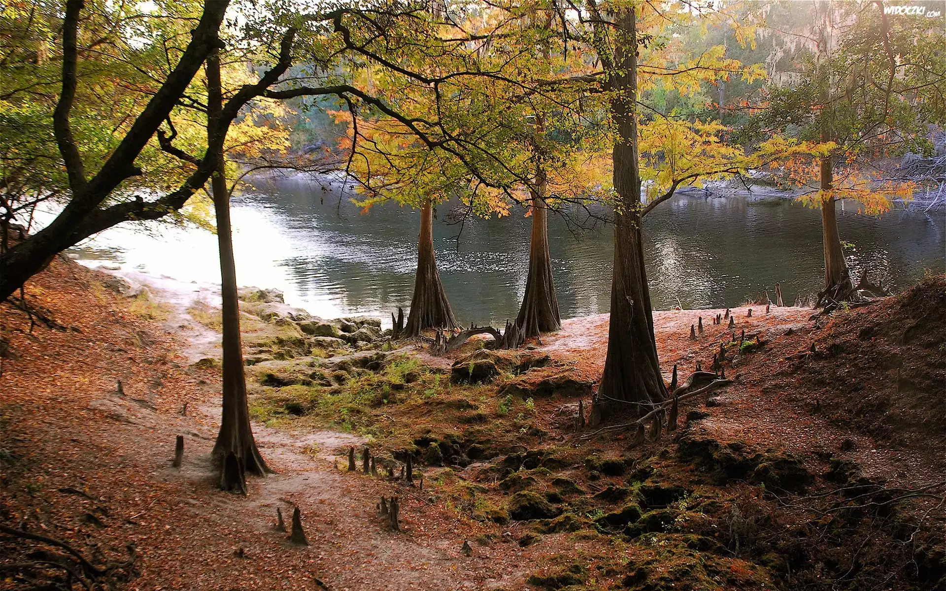 Zdjęcia, Rzeka, Drzewa, Jesień