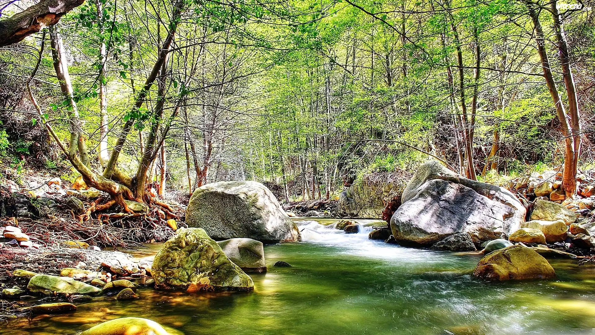 Zdjęcia, Rzeka, Drzewa, Kamienie