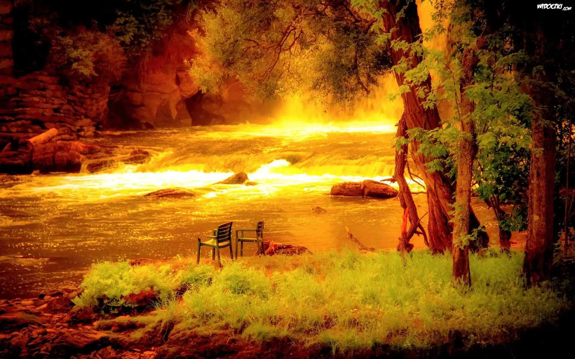 Zdjęcia, Rzeka, Drzewa, Lato