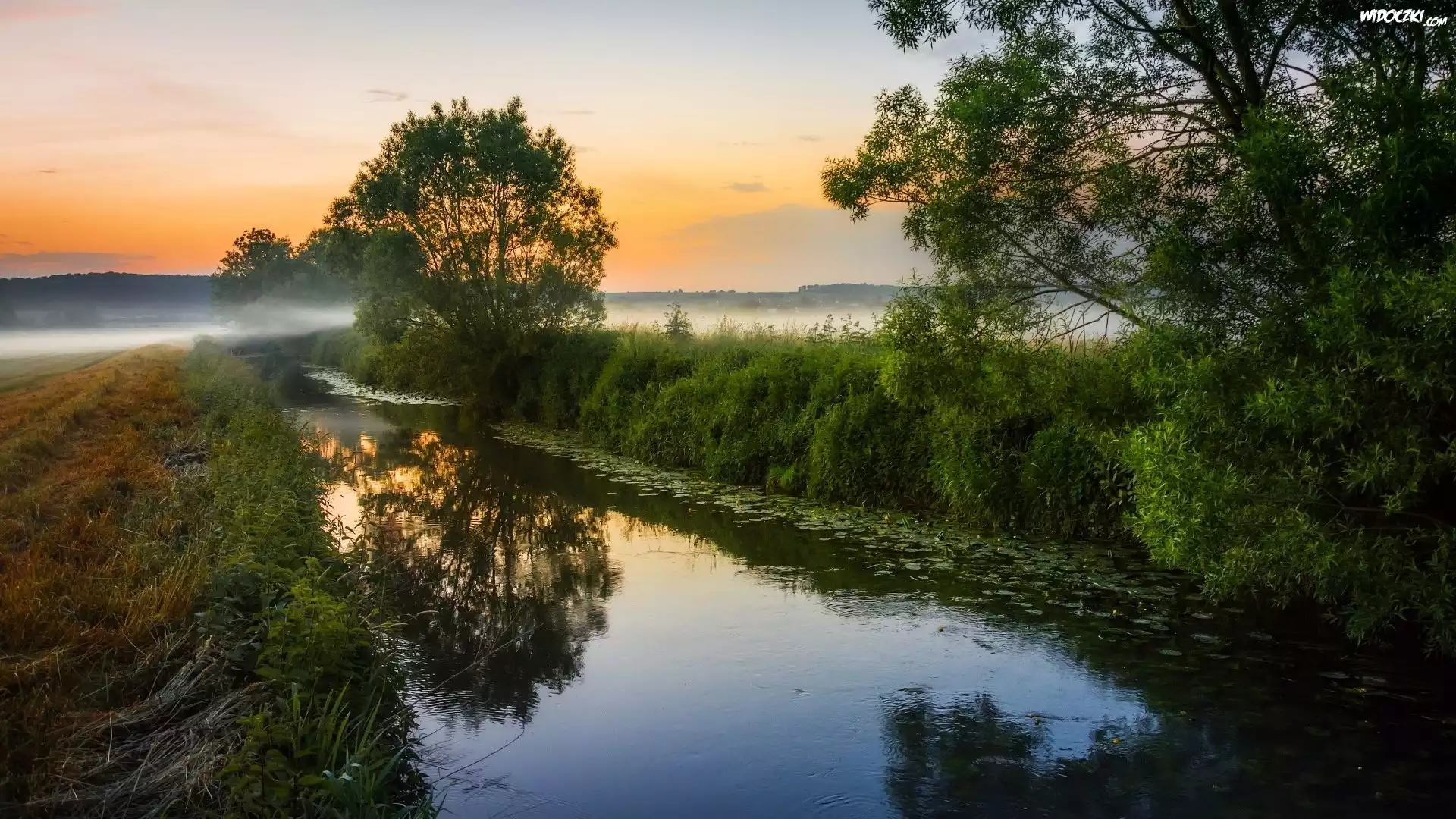 Zdjęcia, Rzeka, Drzewa, Mgła