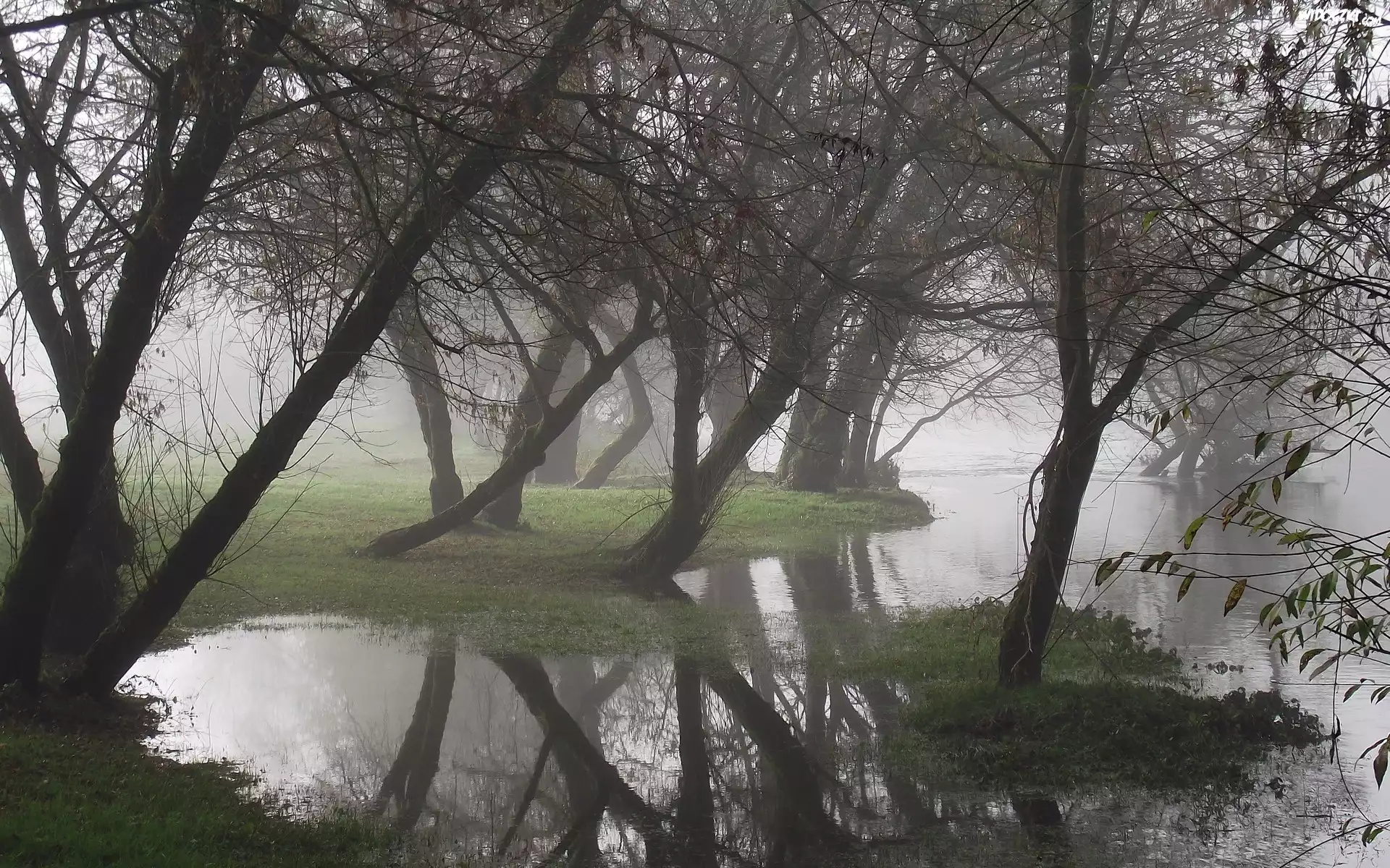 Zdjęcia, Rzeka, Drzewa, Mgła