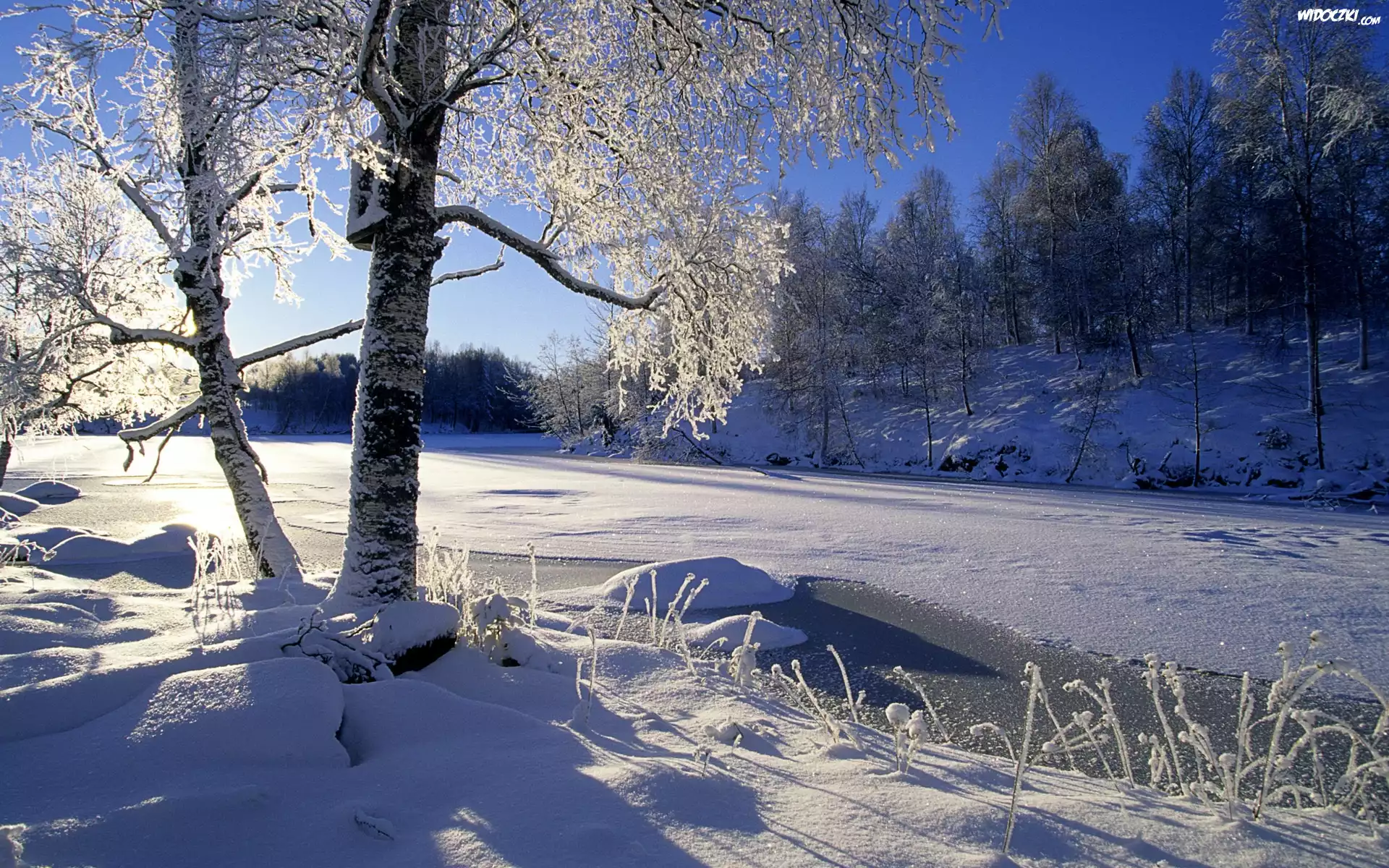 Rzeka, Drzewa, Åšnieg