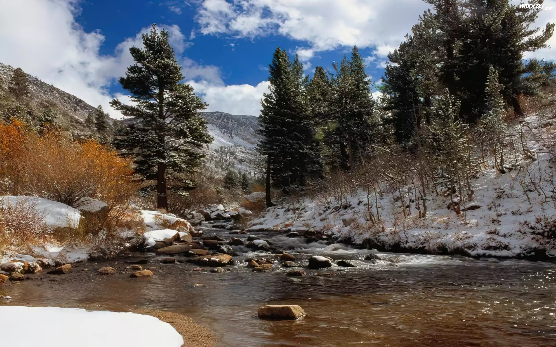 Zdjęcia, Rzeka, Drzewa, Śnieg