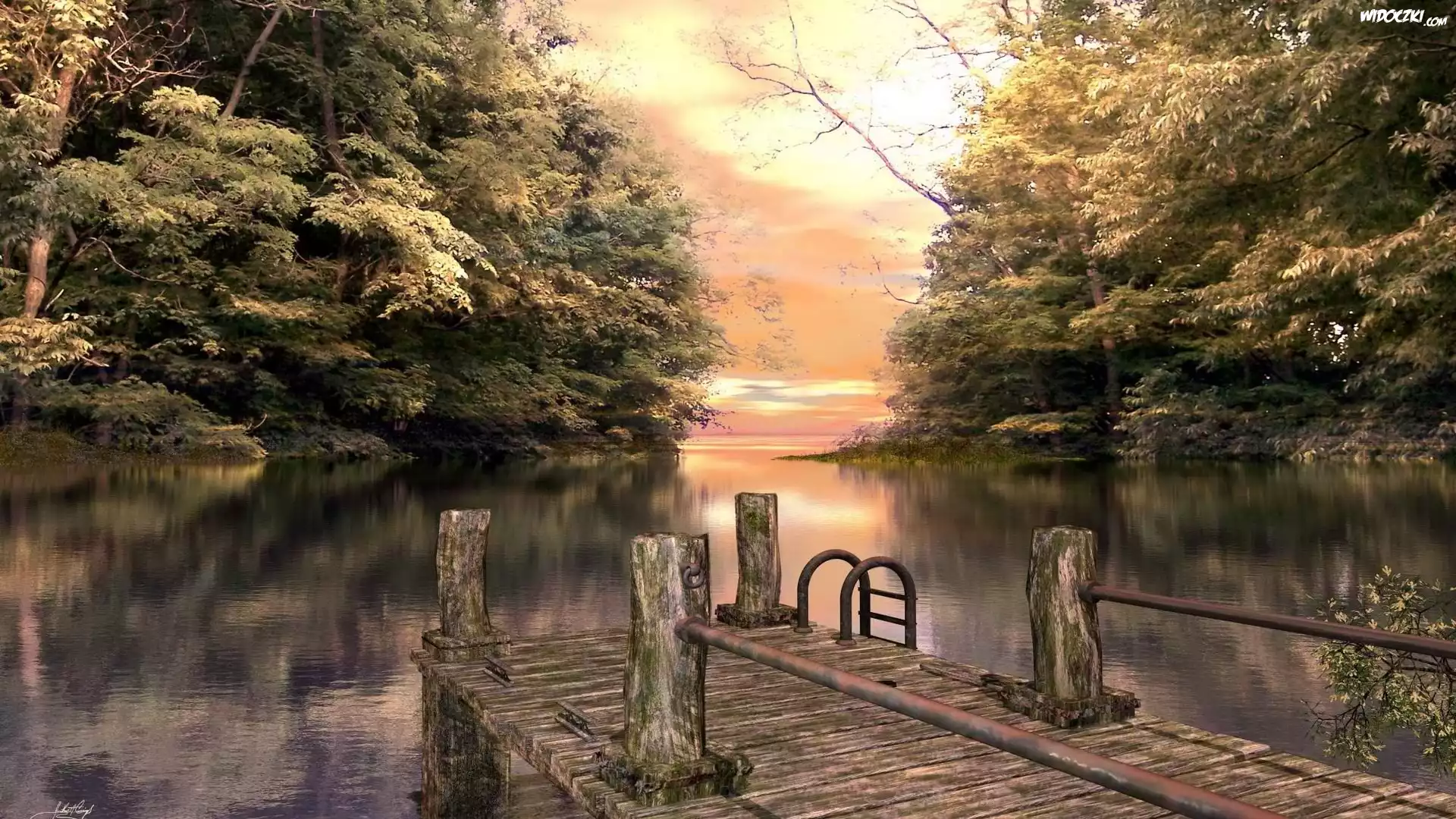 Zdj臋cia, Rzeka, Drzewa, Pomost