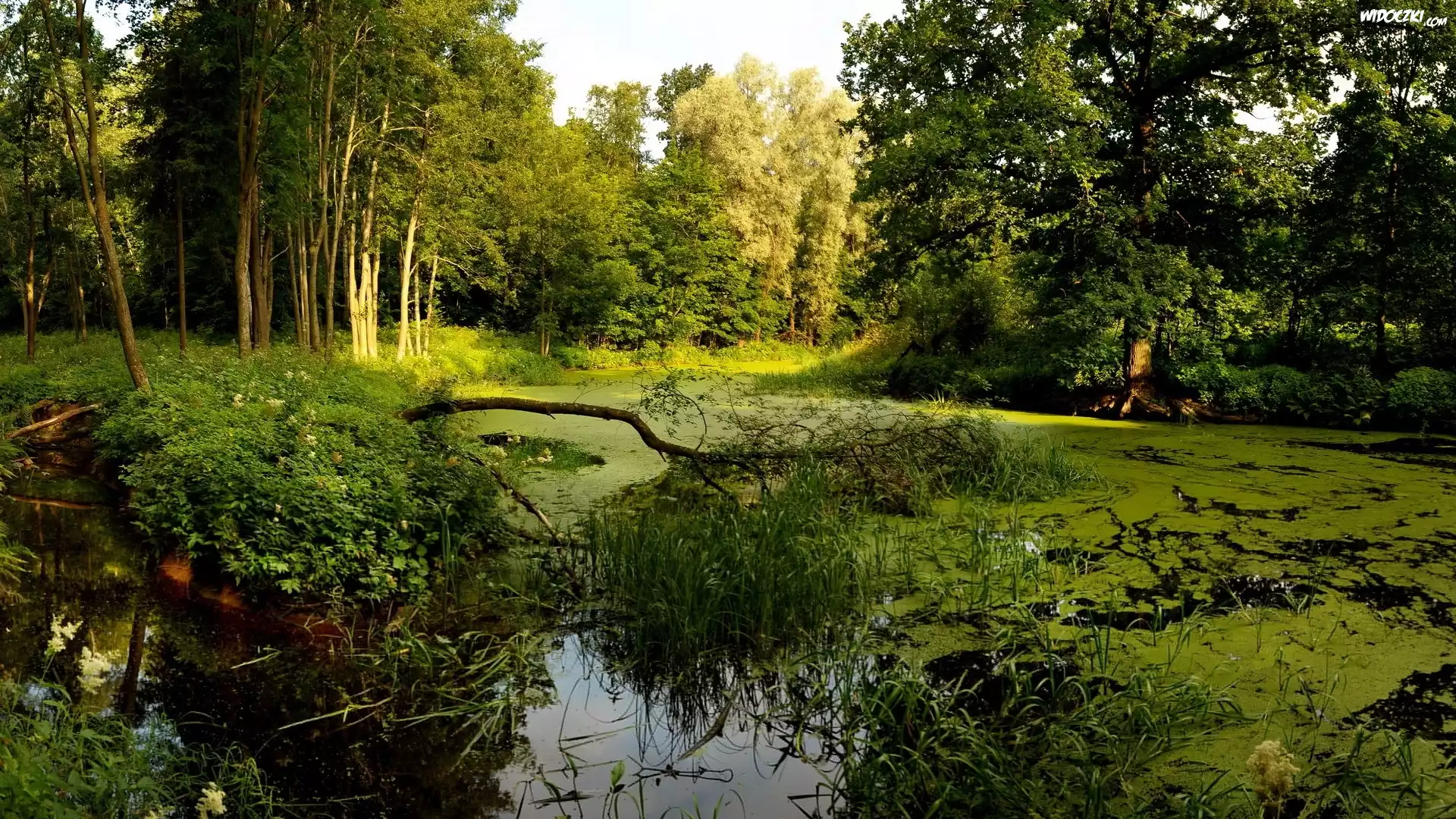 Zdjęcia, Rzeka, Drzewa, Trzciny