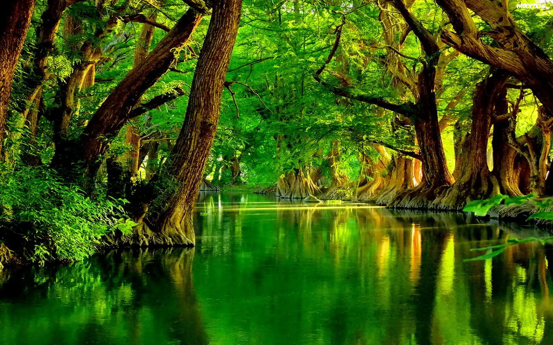 Rzeka, Drzewa, Zieleń