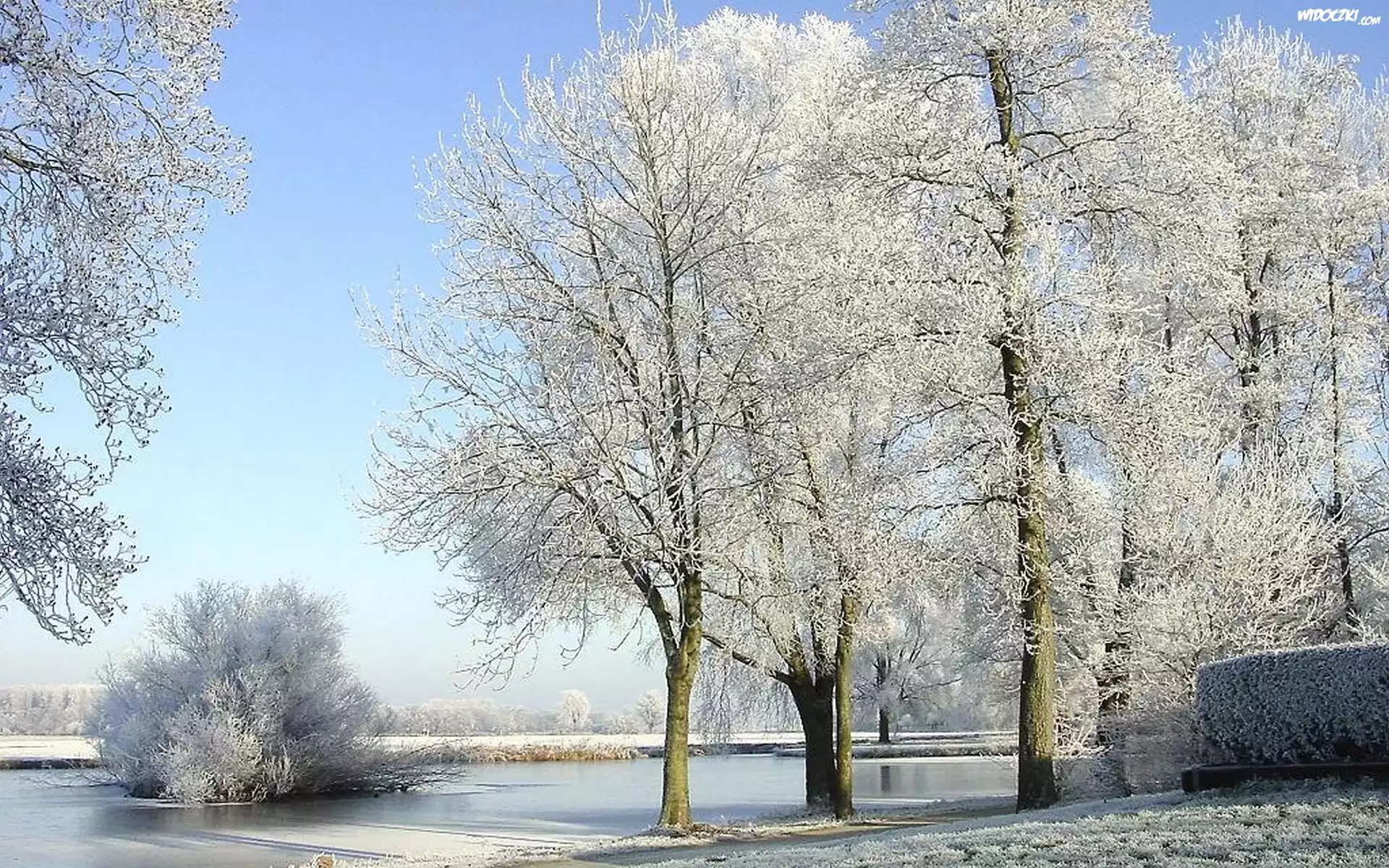 Zdjęcia, Rzeka, Drzewa, Zima