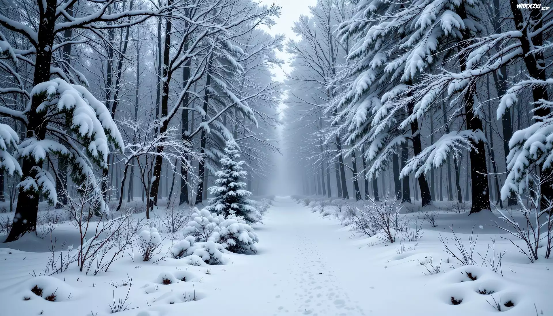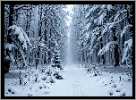 Zdjęcia, Zima, Zaśnieżona, Ścieżka, Drzewa, Las, Grafika AI