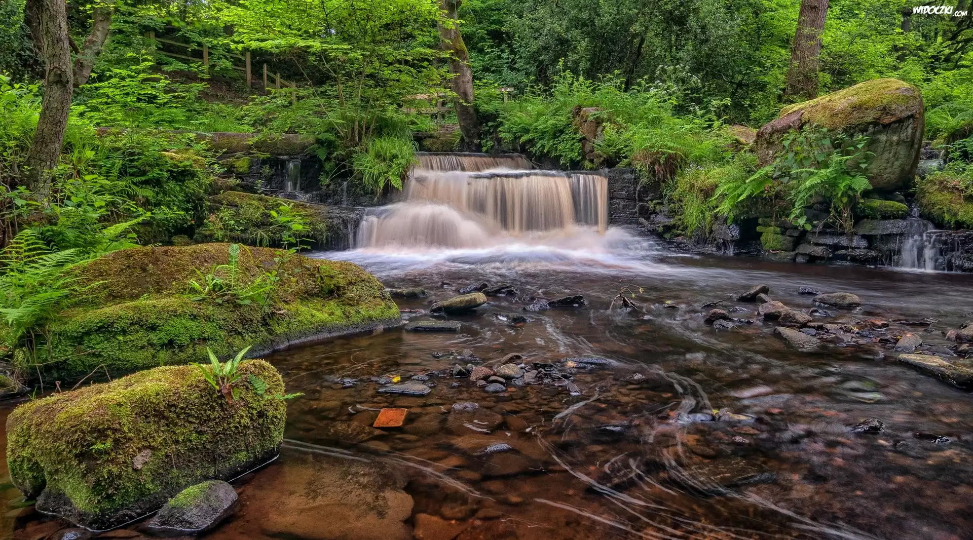 Anglia, Hrabstwo South Yorkshire, Sheffield, Park Narodowy Peak District, Kaskada, Rzeka Rivelin, Kamienie, Drzewa Park Narodowy Peak District |