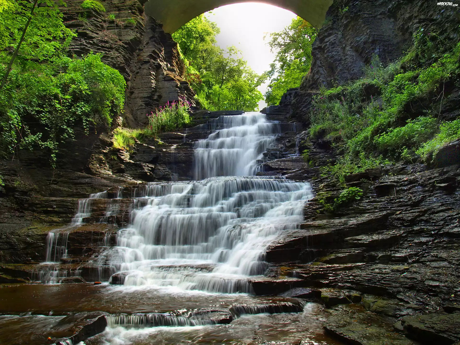Zdjęcia, Drzewa, Rzeka, Skały, kaskada