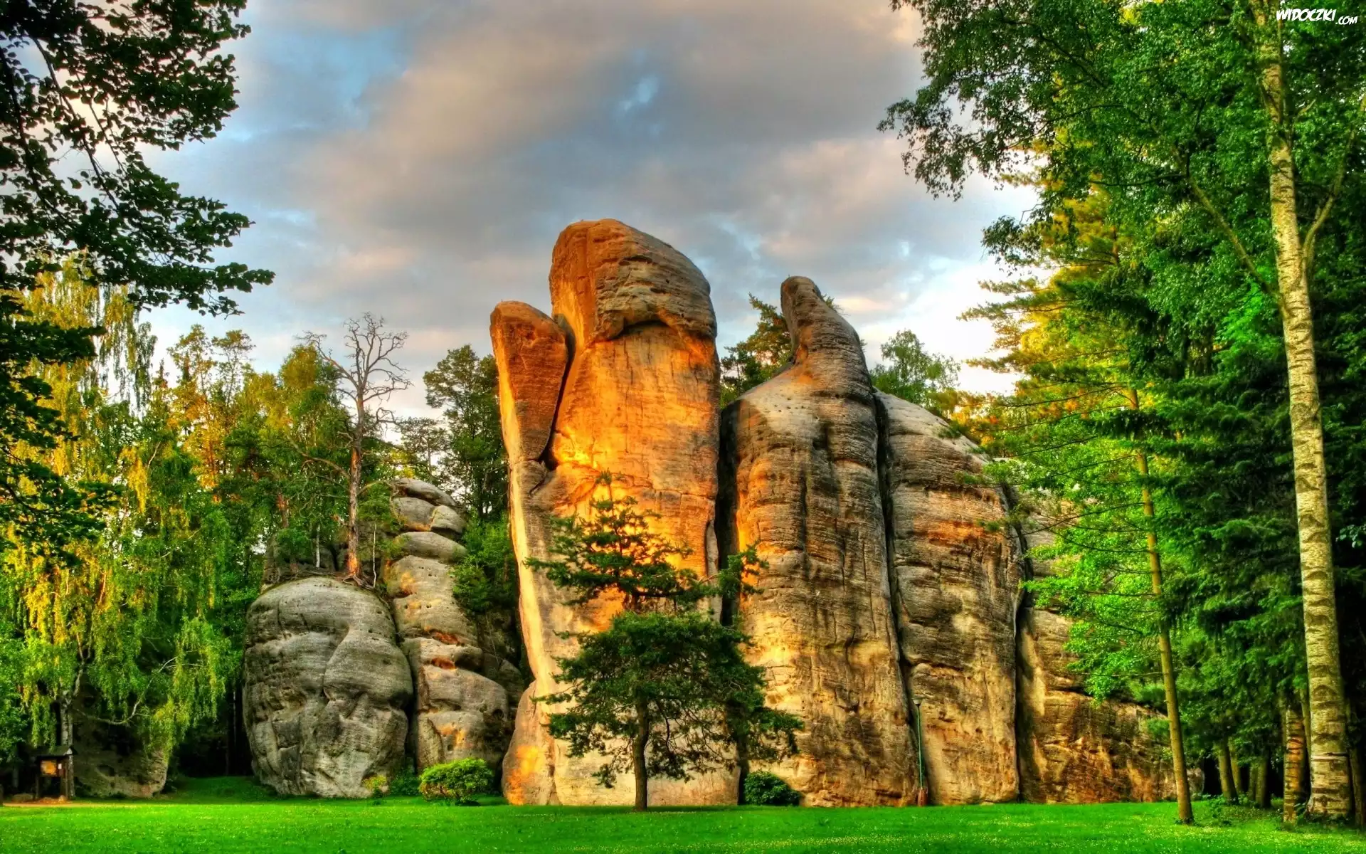 Zdjęcia, Skały, Drzewa, Trawa