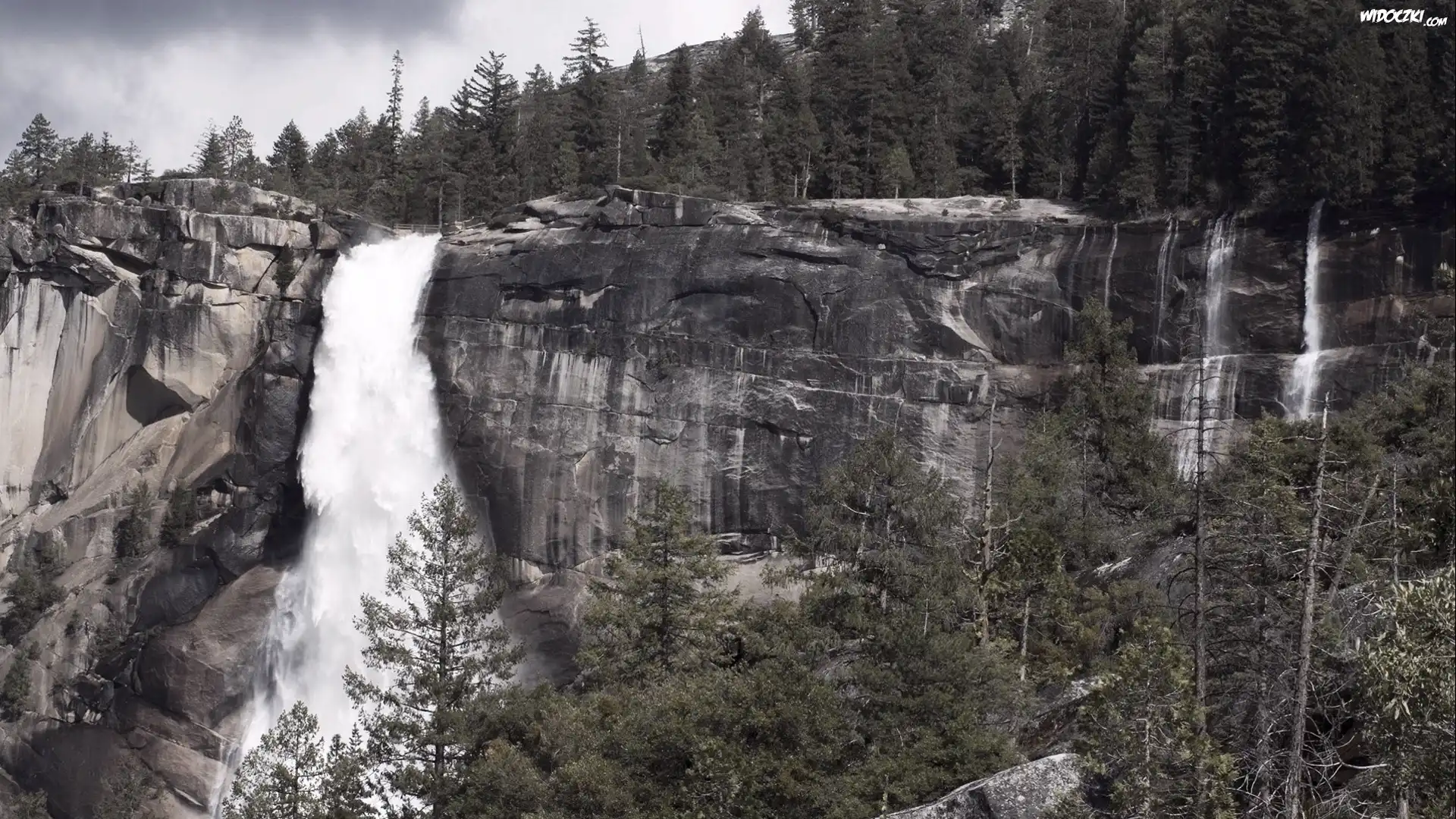 Zdjęcia, Skały, Drzewa, Wodospad