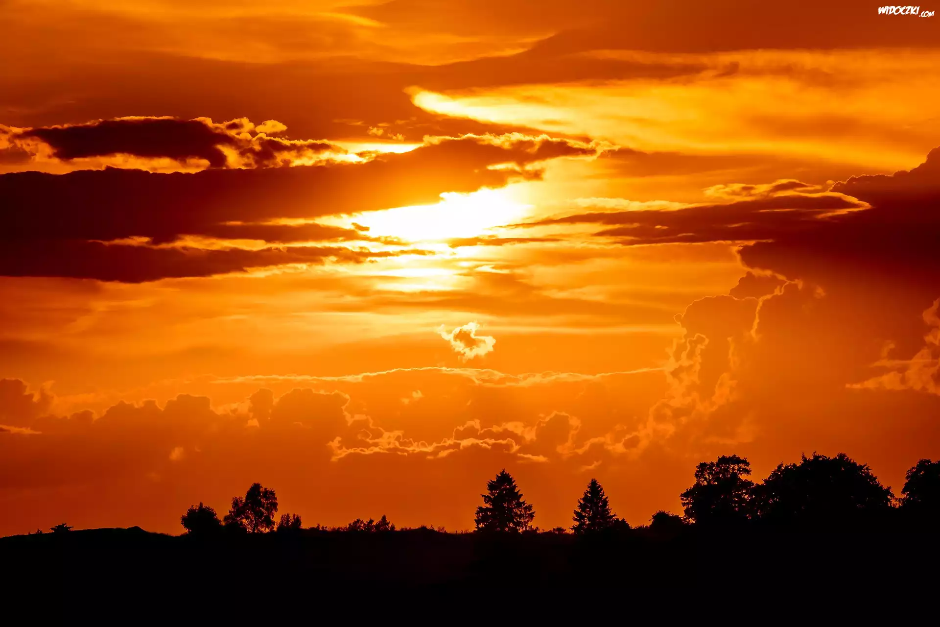 Zdjęcia, Drzewa, Zachód słońca, Chmury