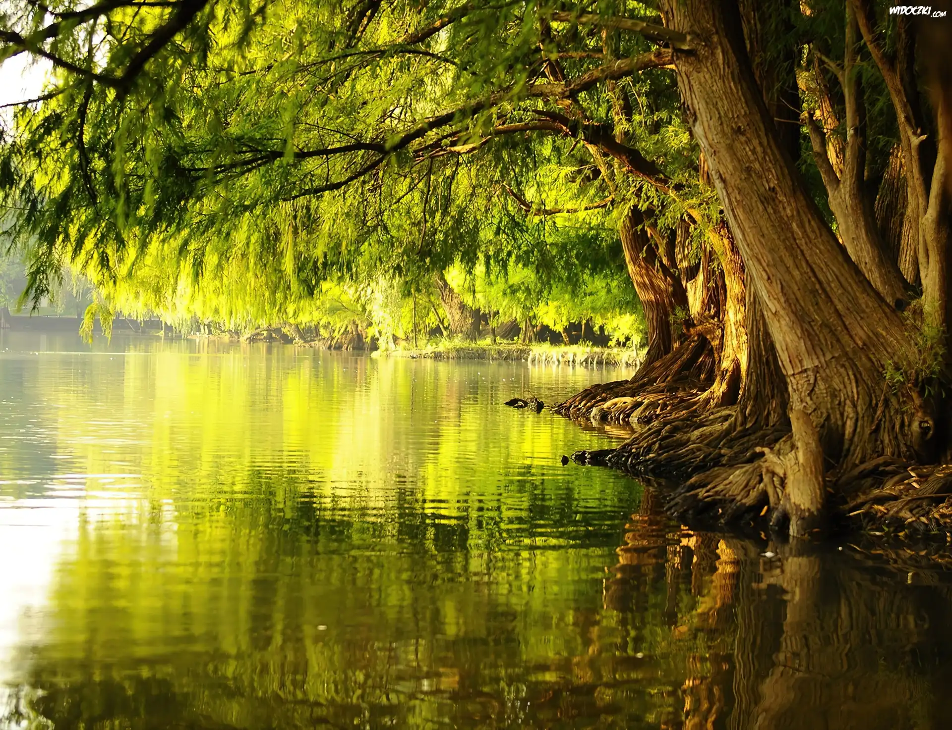 Zdj臋cia, Stare, Drzewa, Jezioro