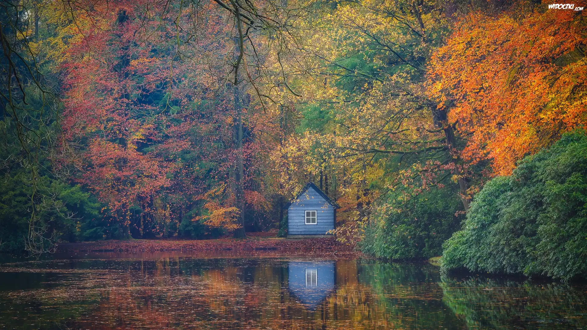 Zdjęcia, Drzewa, Las, Dom, Staw, Jesień