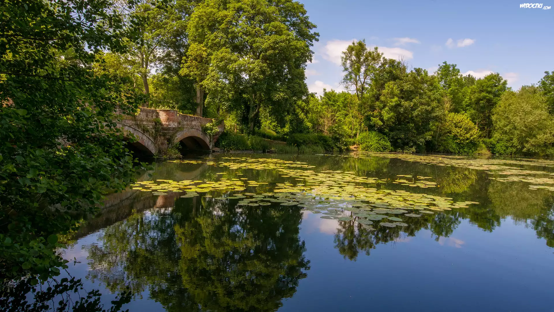 Zdj臋cia, Staw, Kamienny, Most, Drzewa