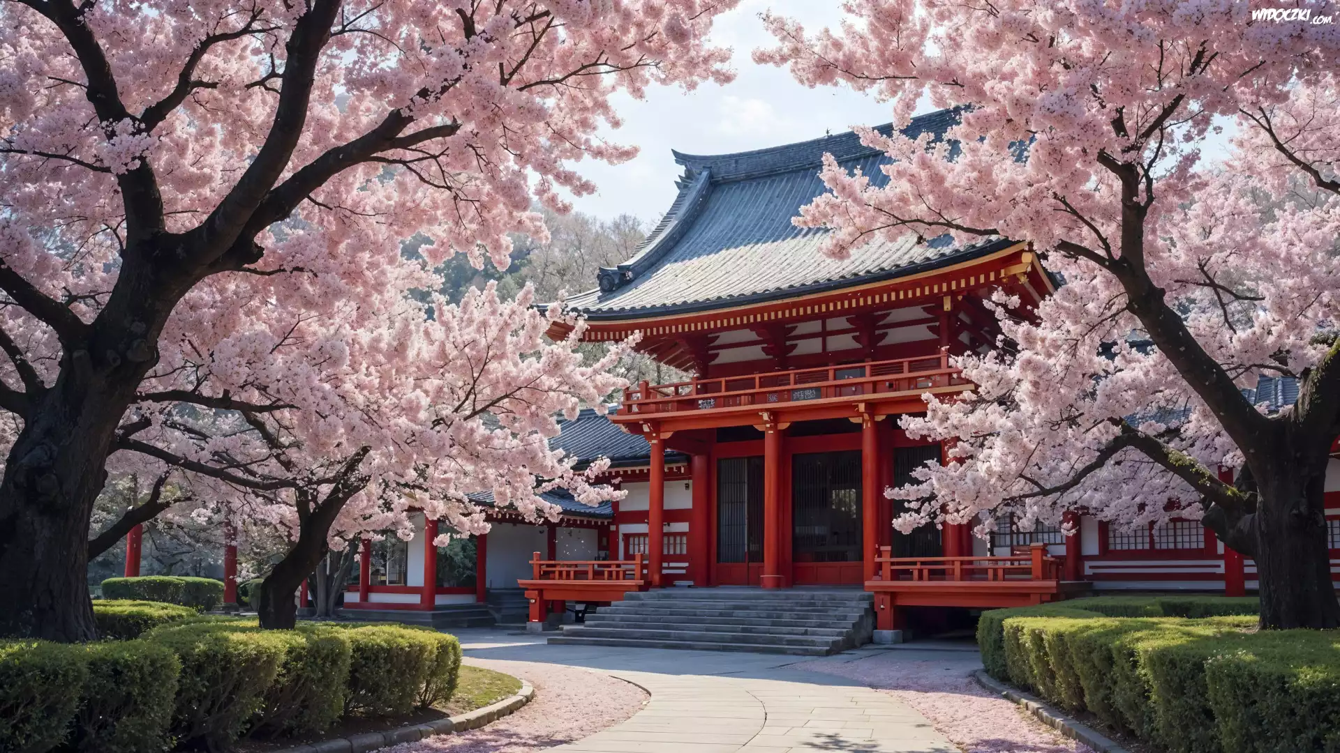 Japoński, Dom, Kwitnące, Drzewa, Droga, Wiosna