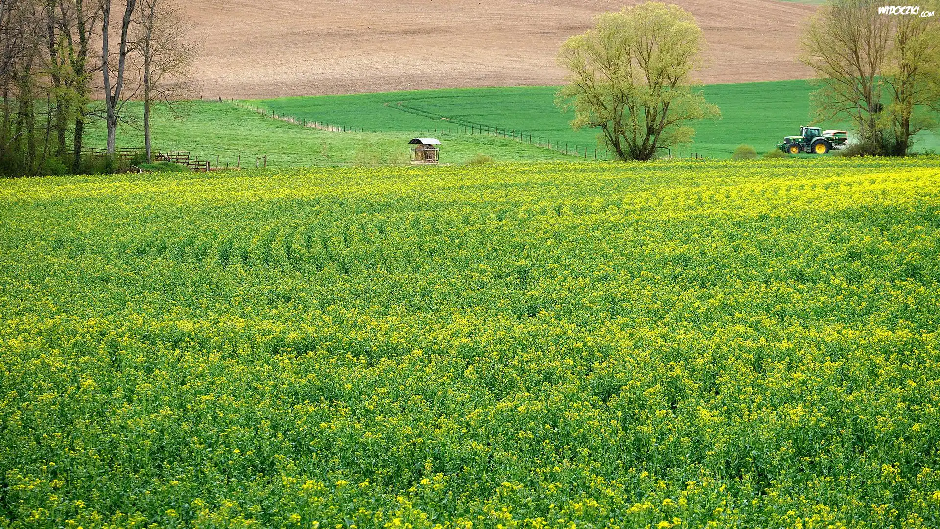 Wiosna, Pole, Rzepak, Drzewa