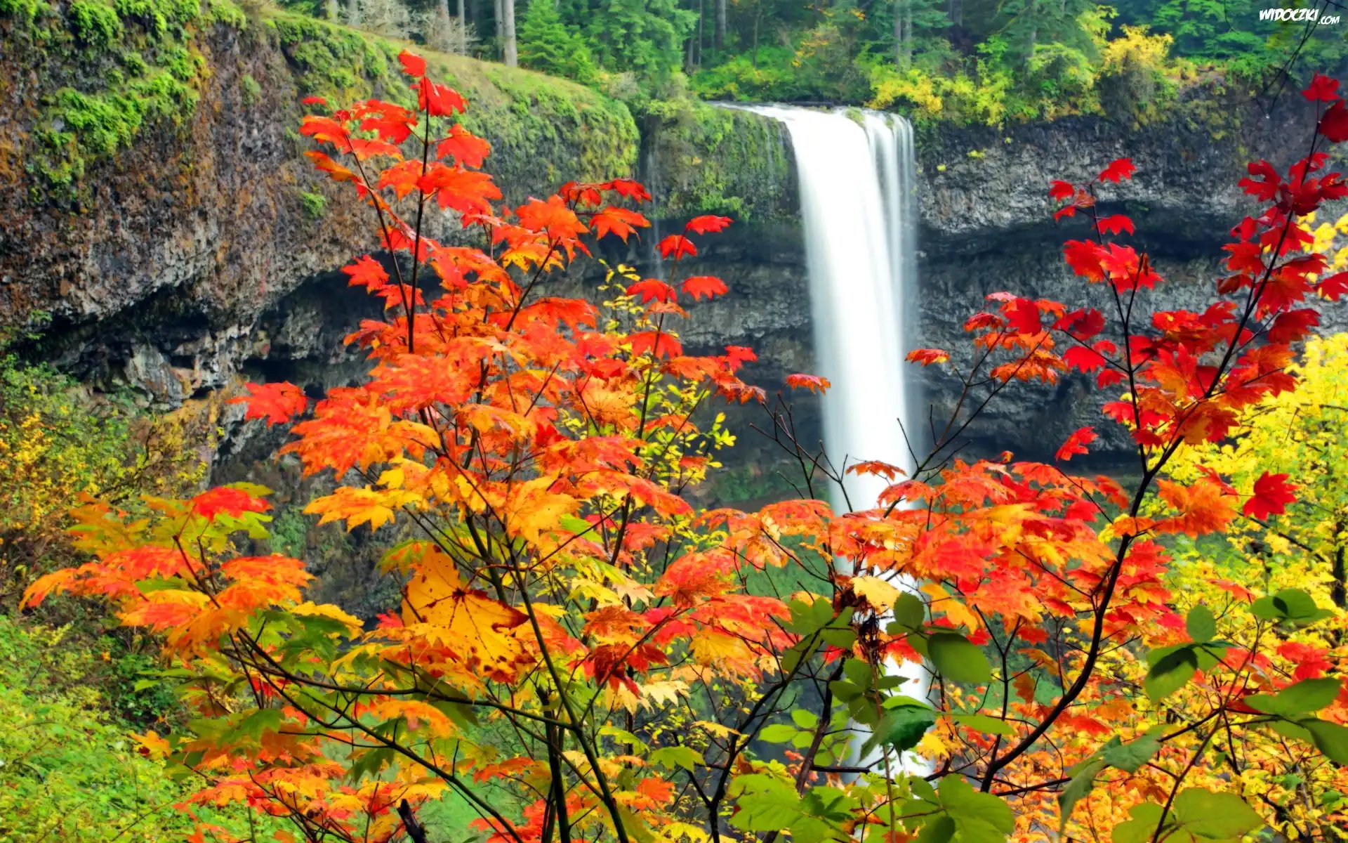 Wodospad, Drzewa, Jesień