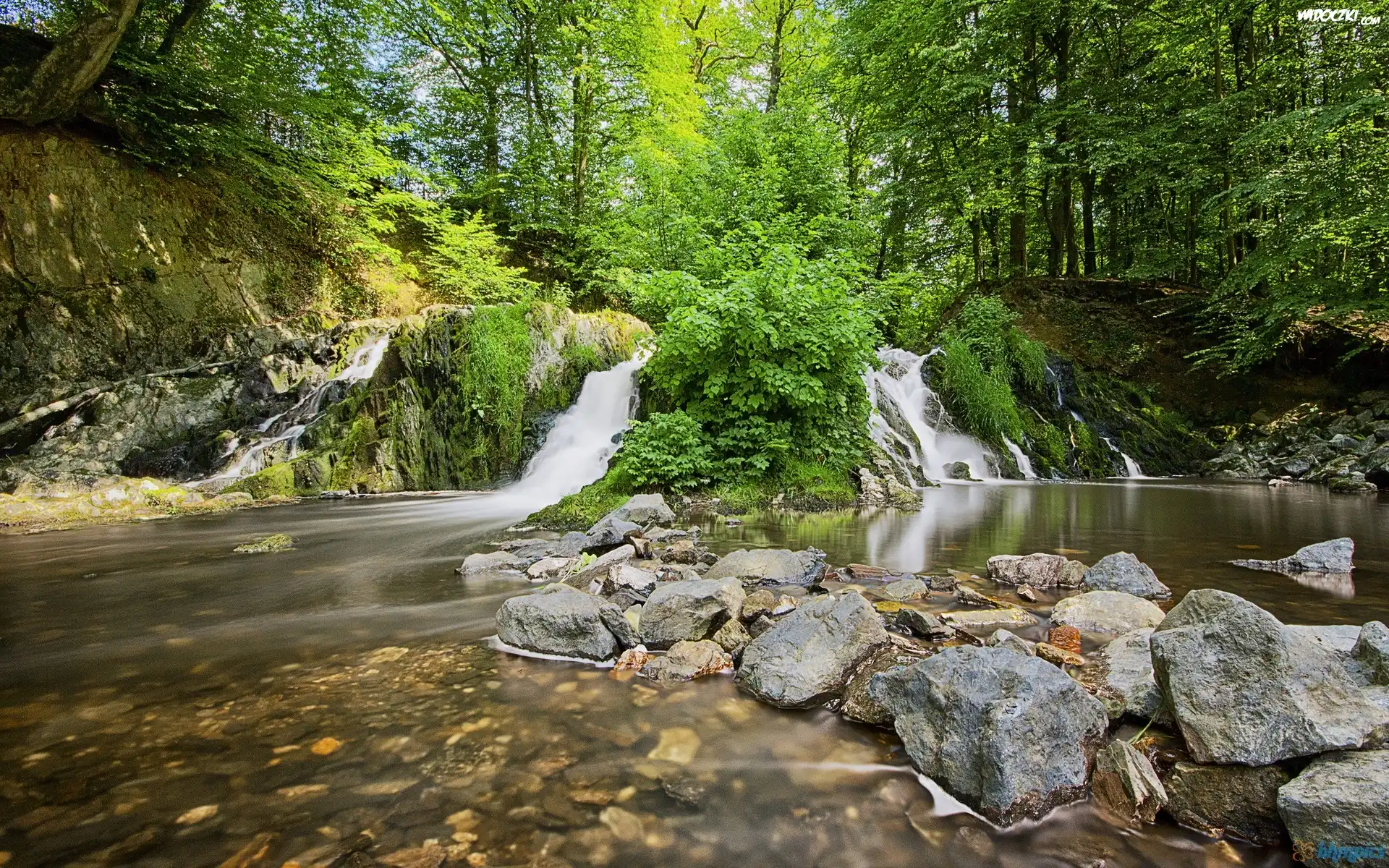 Zdj臋cia, Wodospad, Drzewa, Kamienie