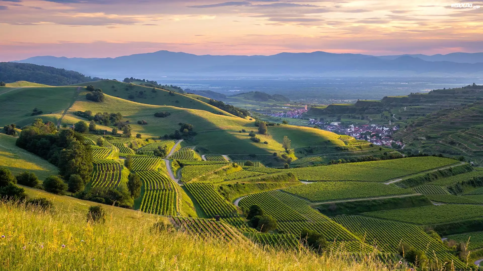 Zdjęcia, Wzgórza, Drzewa, Plantacje, Domy, Badenia-Wirtembergia, Niemcy