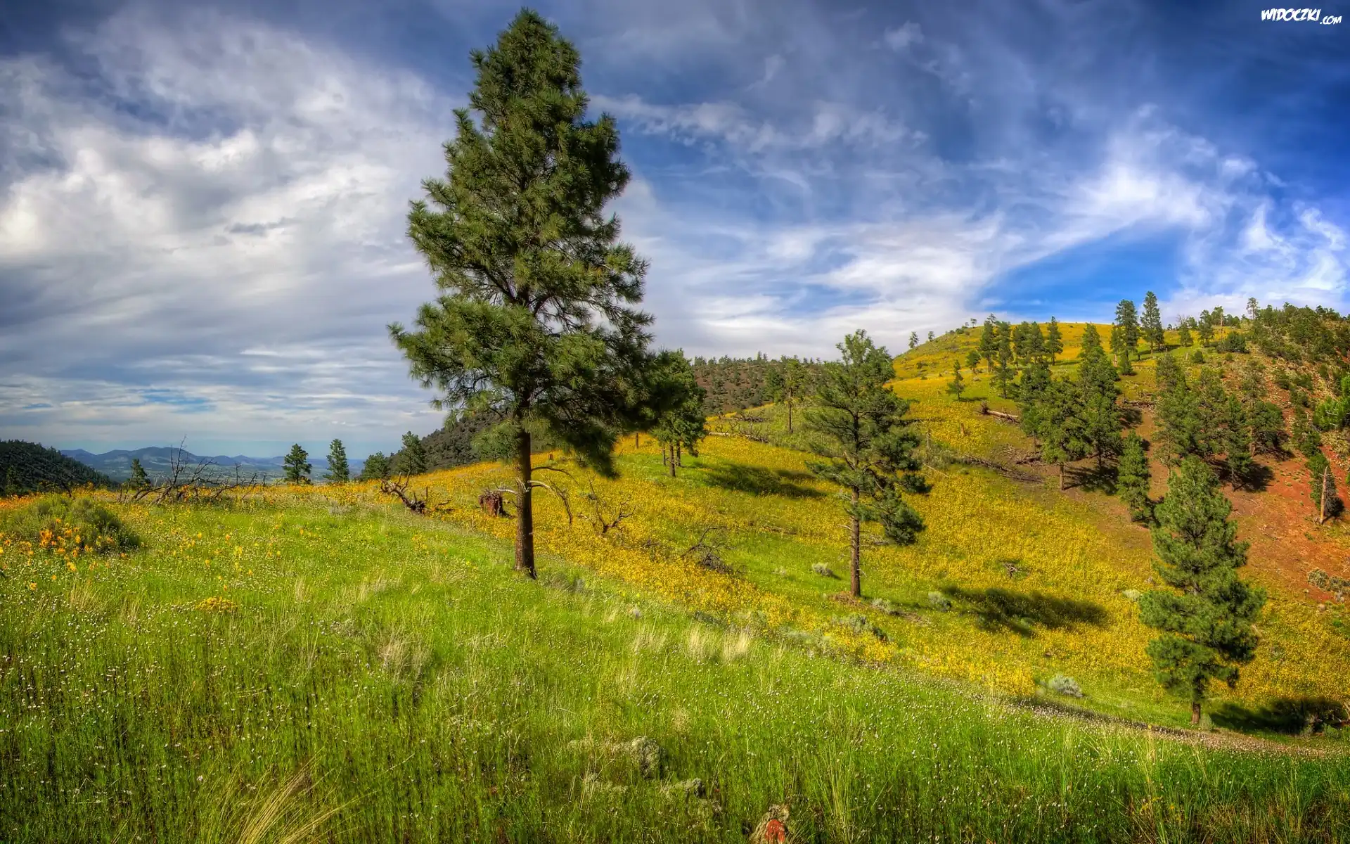 Zdjęcia, Drzewa, Trawa, Wzgórza, Lato