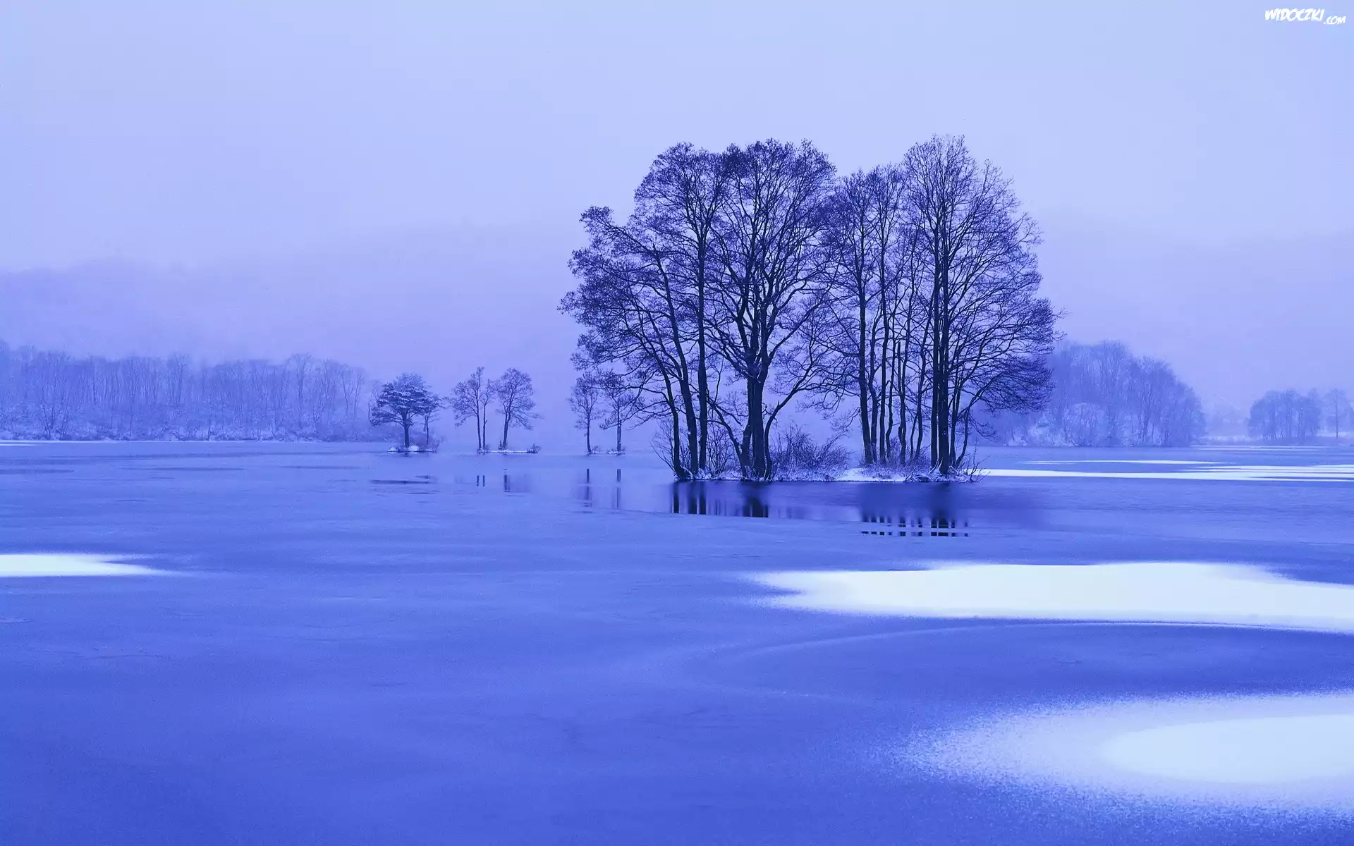 Drzewa, Zima, Zamarznięte, Jezioro