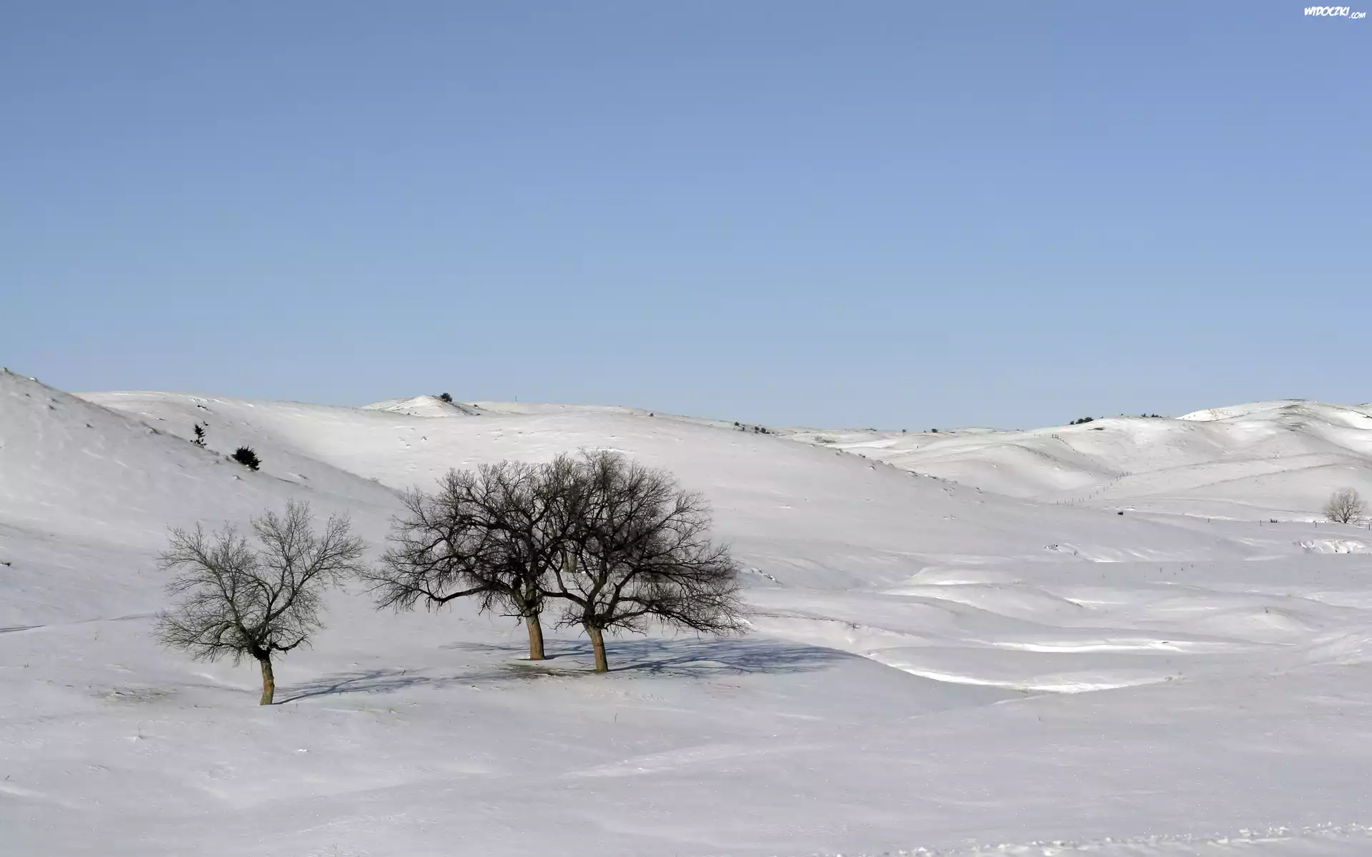 Zdjęcia, Drzewa, Śnieg, Zaspy, Mróz